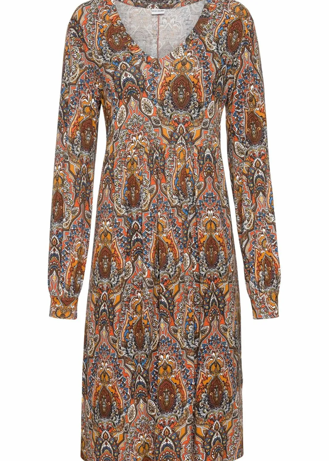 Jerseykleid mit Paisley Druck und V-Ausschnitt. Länge in Gr. 38 ca. 104 cm.