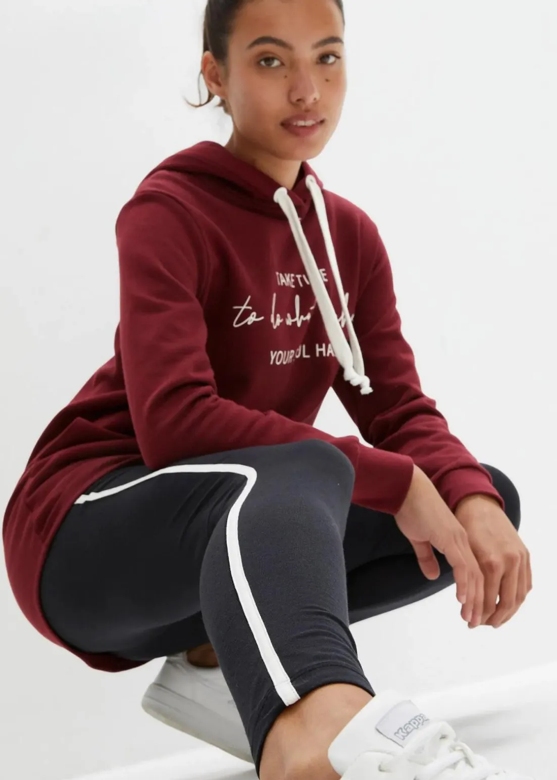 Jogginganzug aus extra langem, innen weich angerautem Oversize-Sweatshirt und knöchelfreier Leggings (2-teilig)