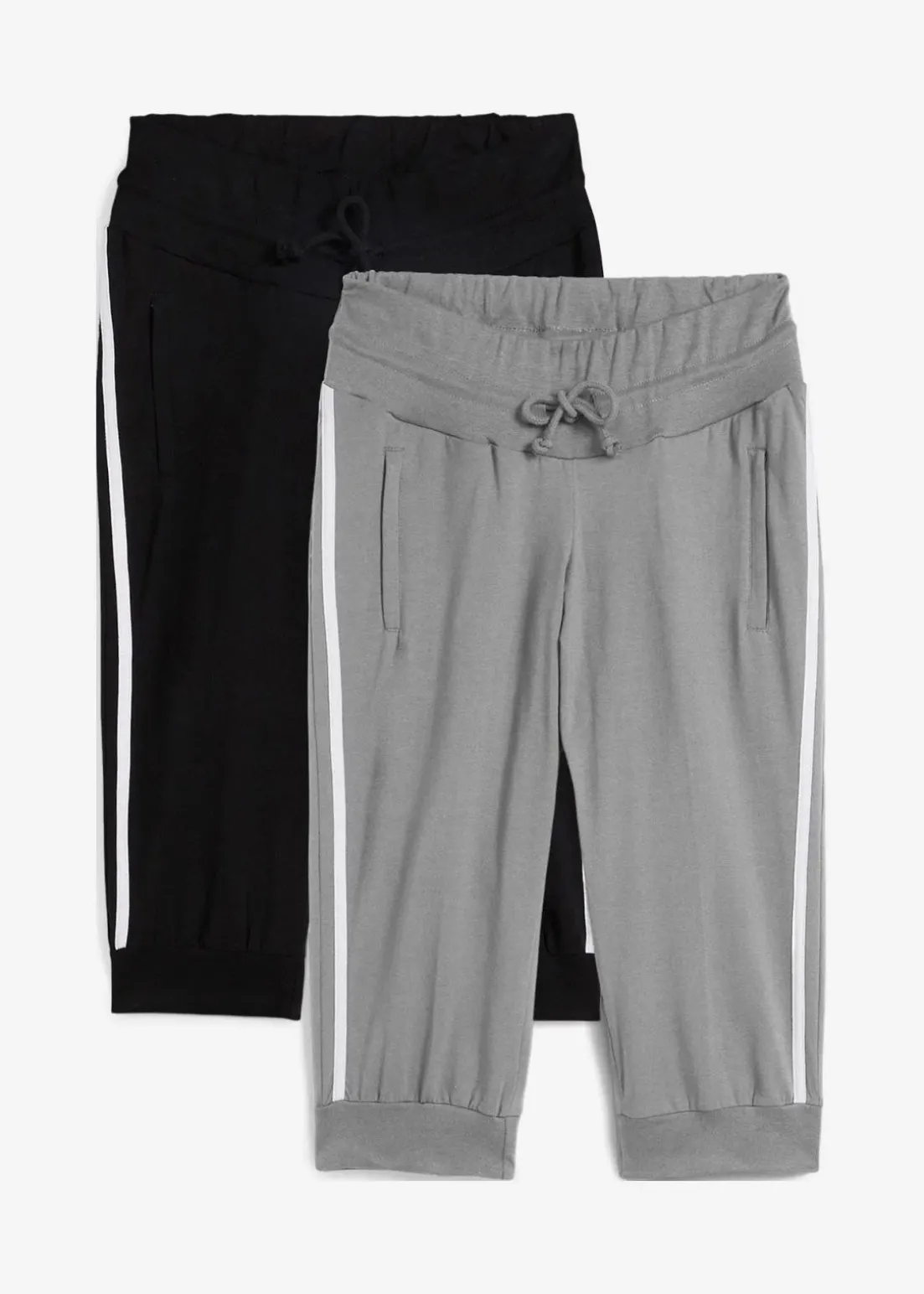 2er-Pack Sport-Caprihose aus einem Stretch-Material mit Reißverschlusstaschen