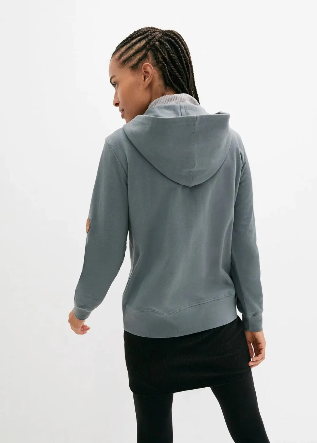 Kapuzenjacke mit Kängurutaschen und Lederimitat-Details