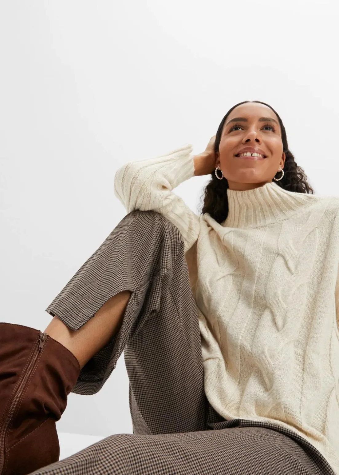 Karierte Bundfaltenhose mit Schlitz-Detail, abnehmbarer Kette