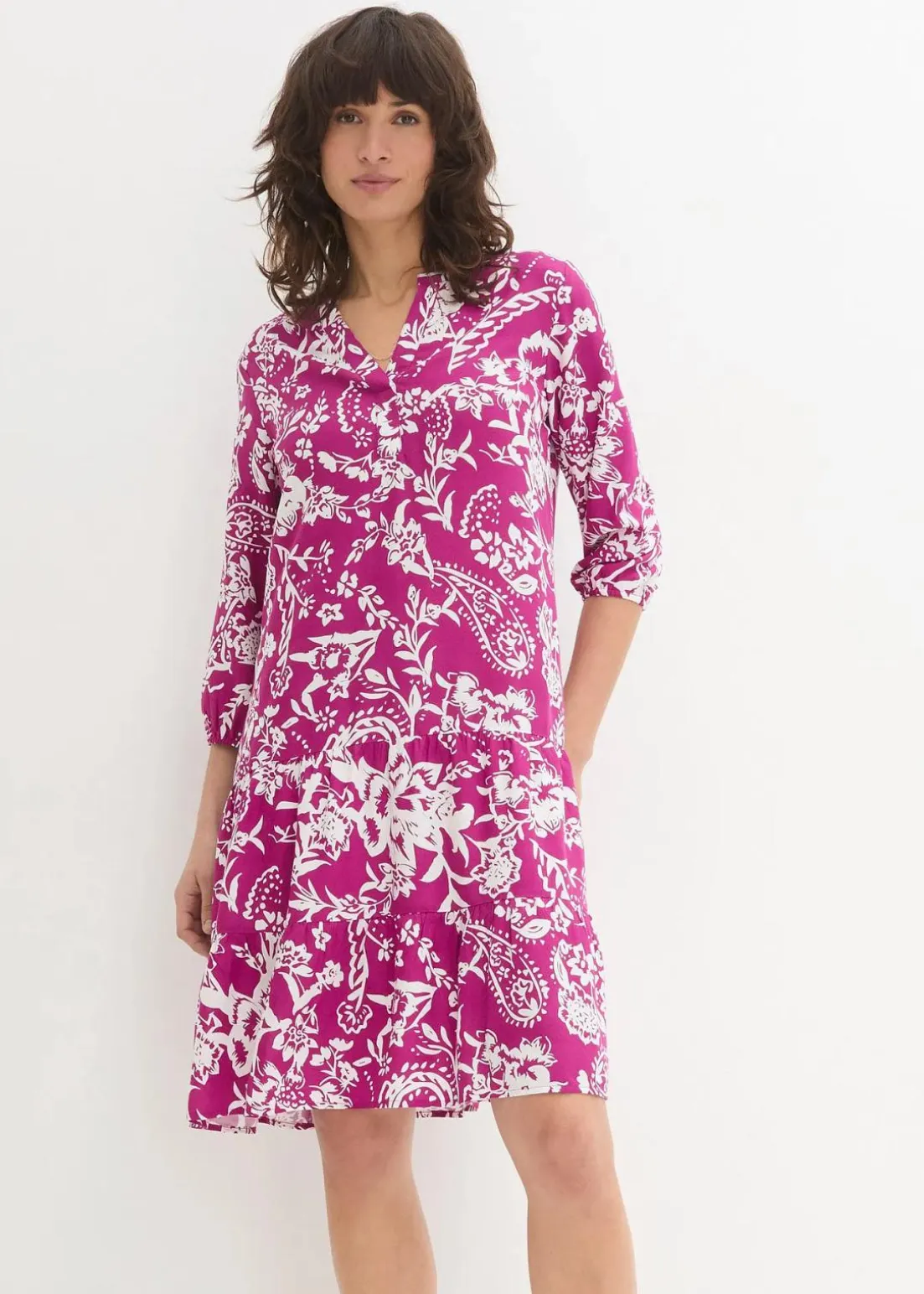 Frühlingshaftes Kleid bedruckt mit Volant
