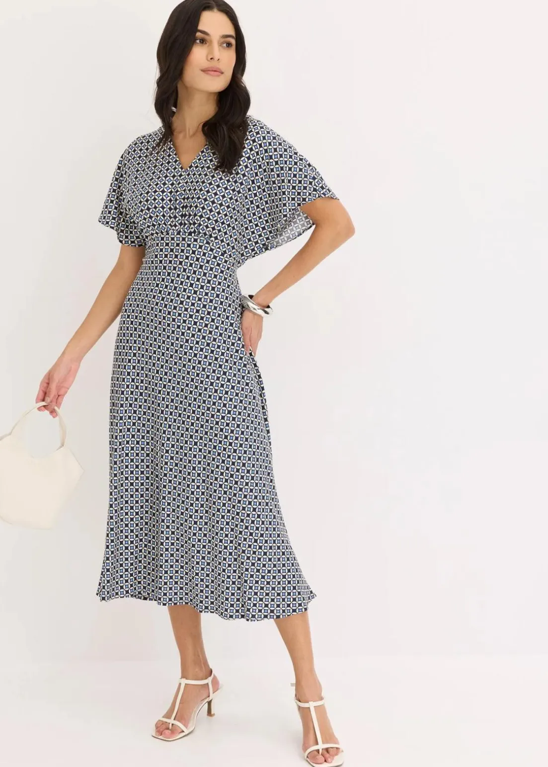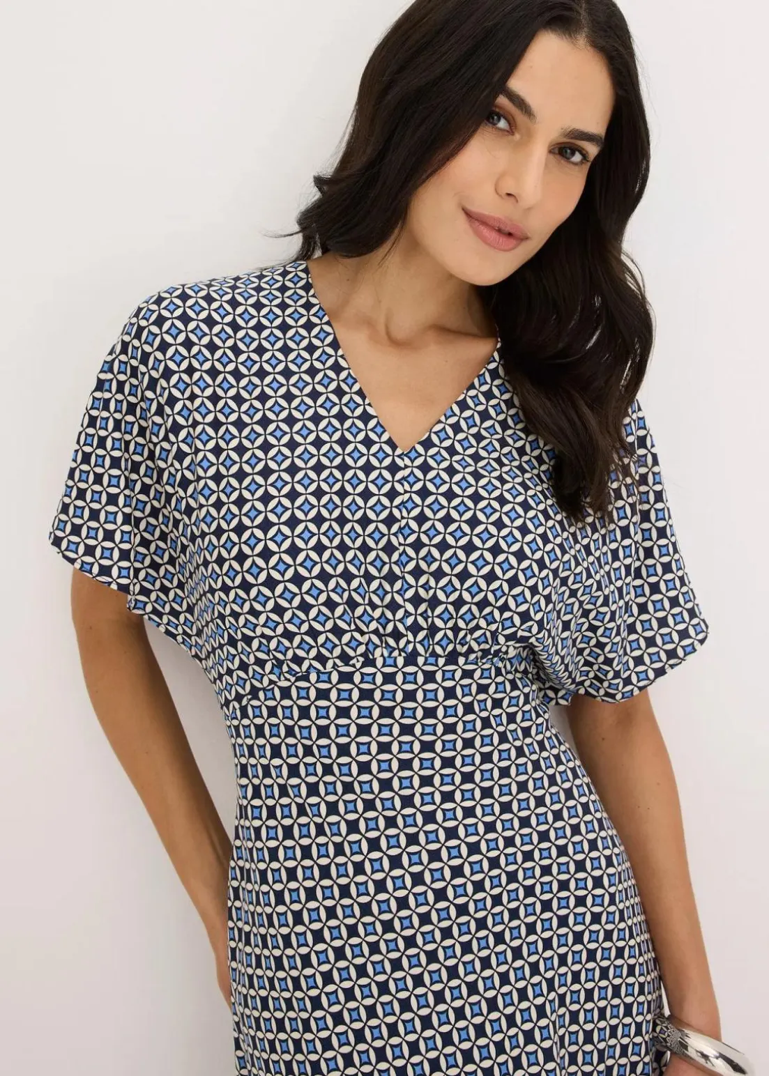 schickes Kleid aus fließender Viskose und V-Ausschnitt