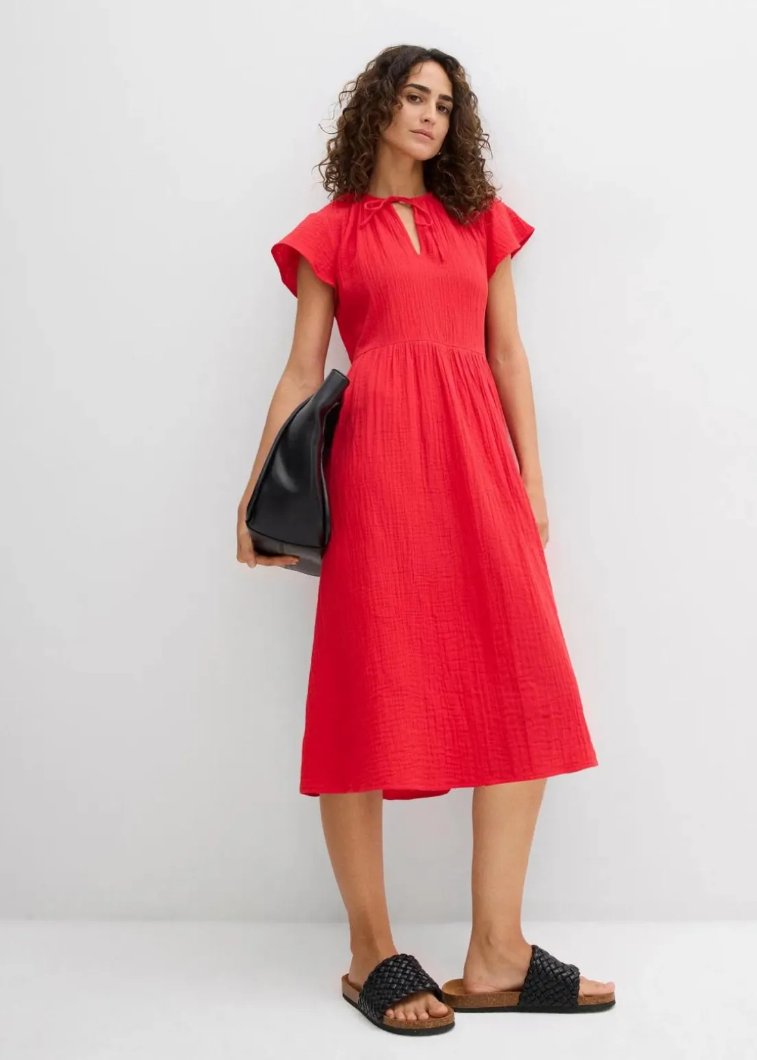 ausgestelltes Musselinkleid aus reiner Baumwolle mit V-Ausschnitt