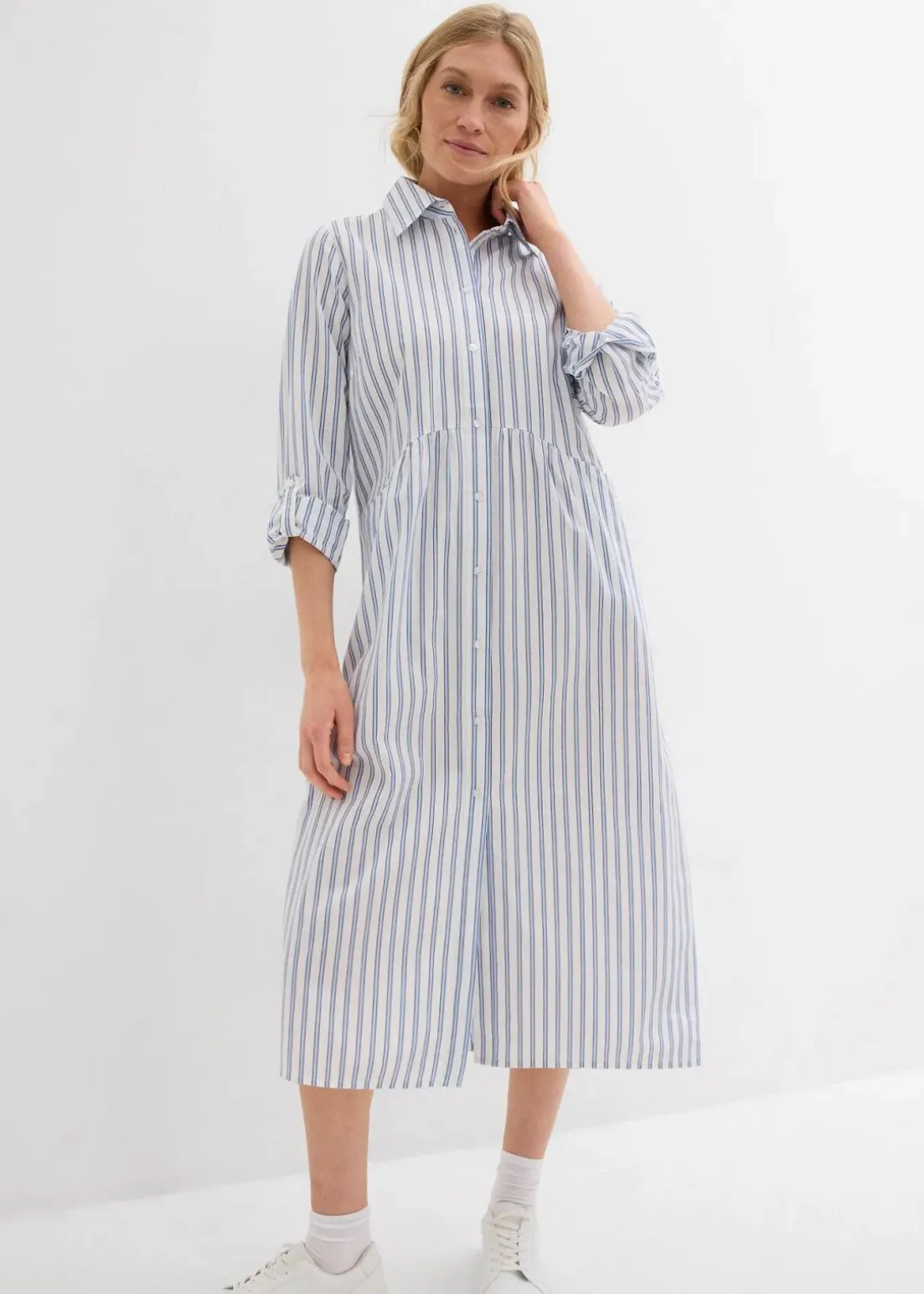 Kleid mit Hemdkragen, Ärmeln mit Umschlagfunktion und einem geraden Saum