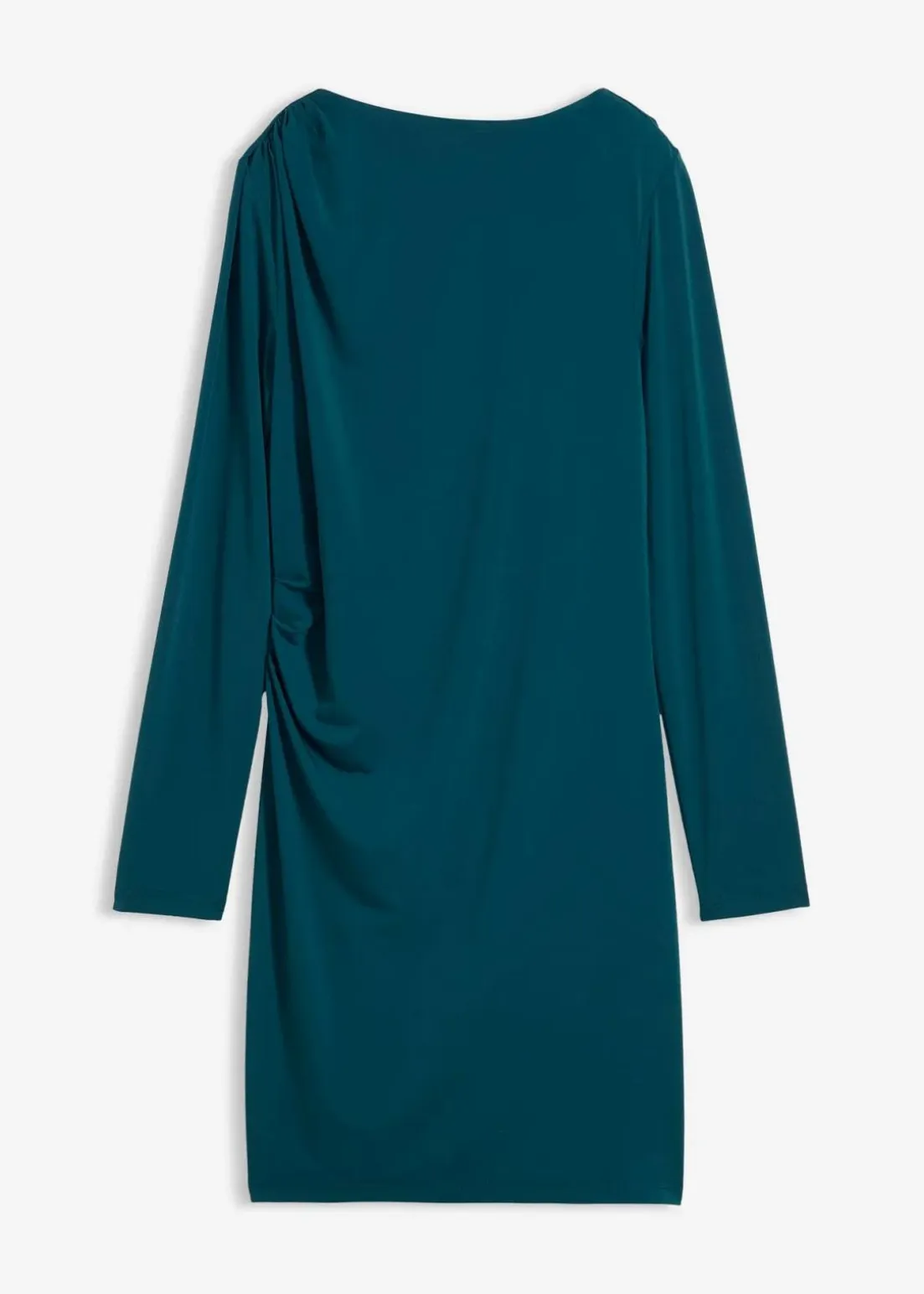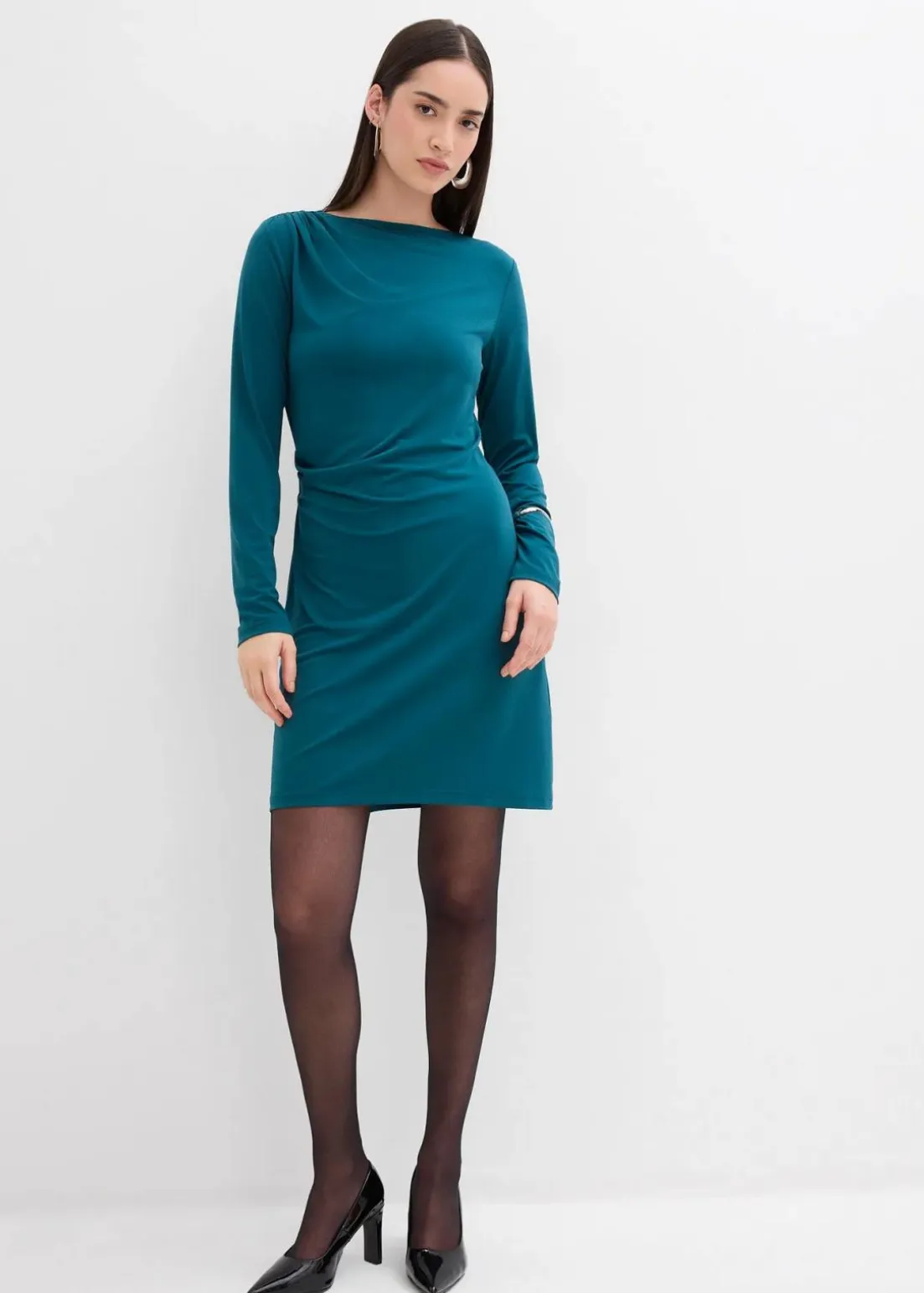 Drapiertes Minikleid mit Taillenfokus sowie U-Bootausschnitt. Verdeckter Reißverschluss hinten