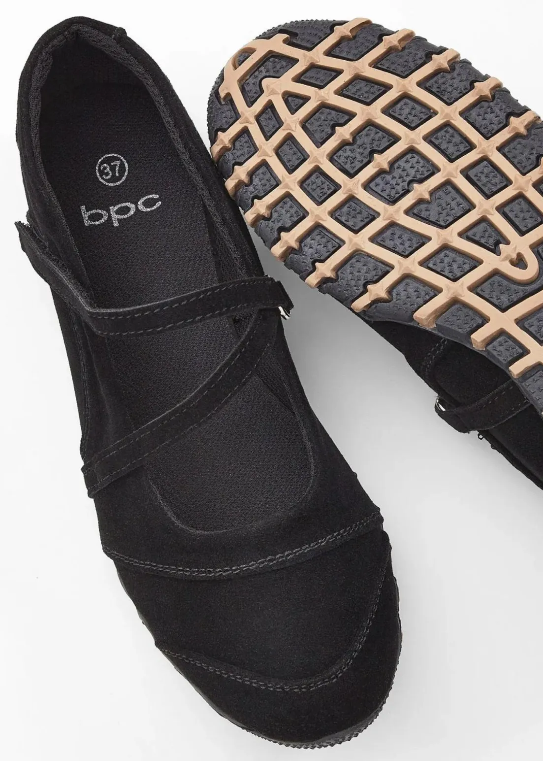 Die sportliche und bequeme Ballerina hat Klettverschlussriemchen und ist vielseitig kombinierbar.