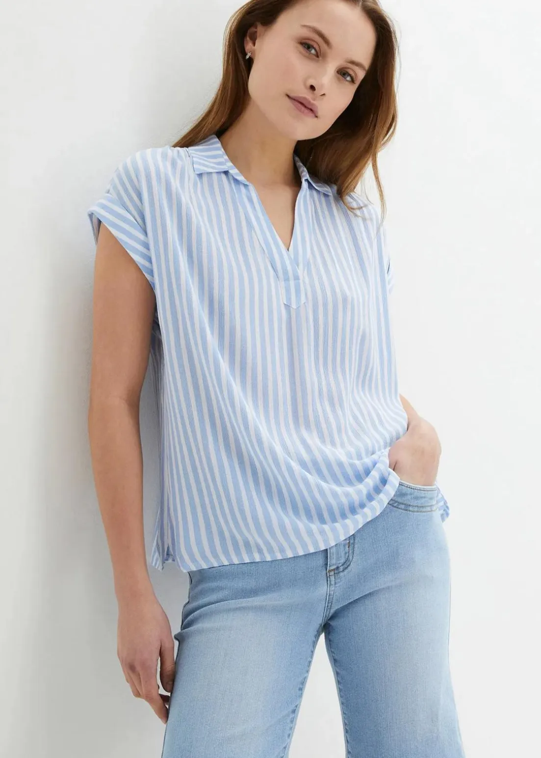 Luftige Kurzarm-Bluse mit Streifen