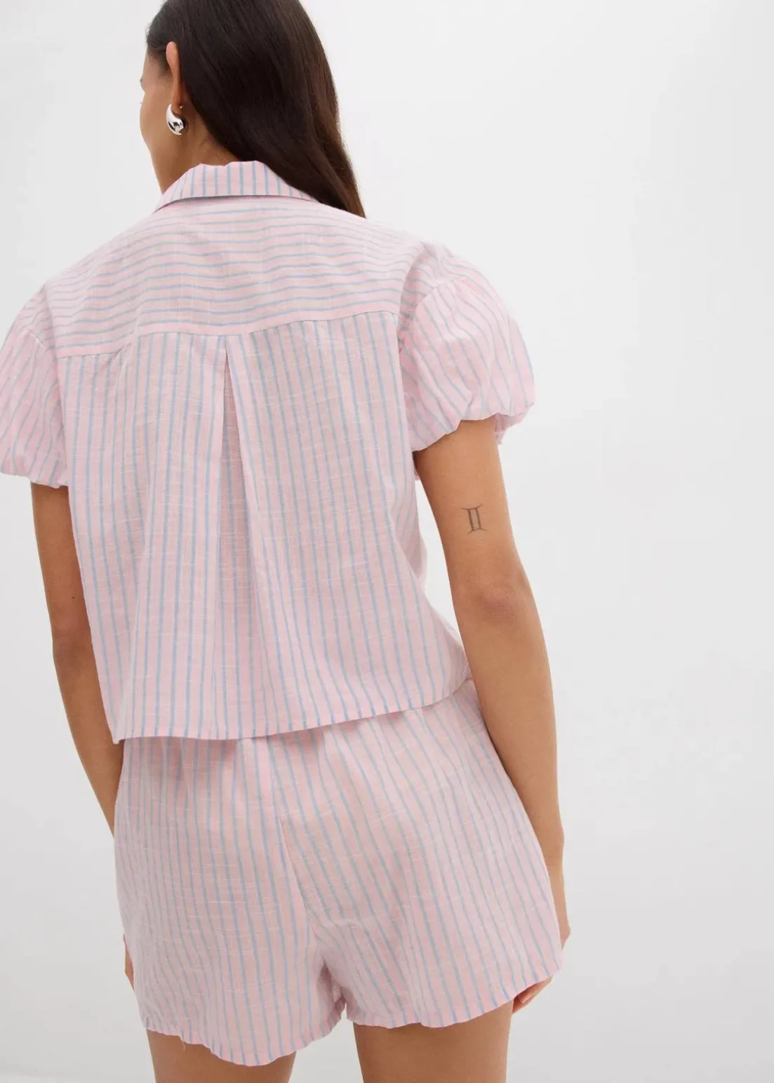 Modische Kurzarmbluse aus reiner Baumwolle mit Ballonärmeln