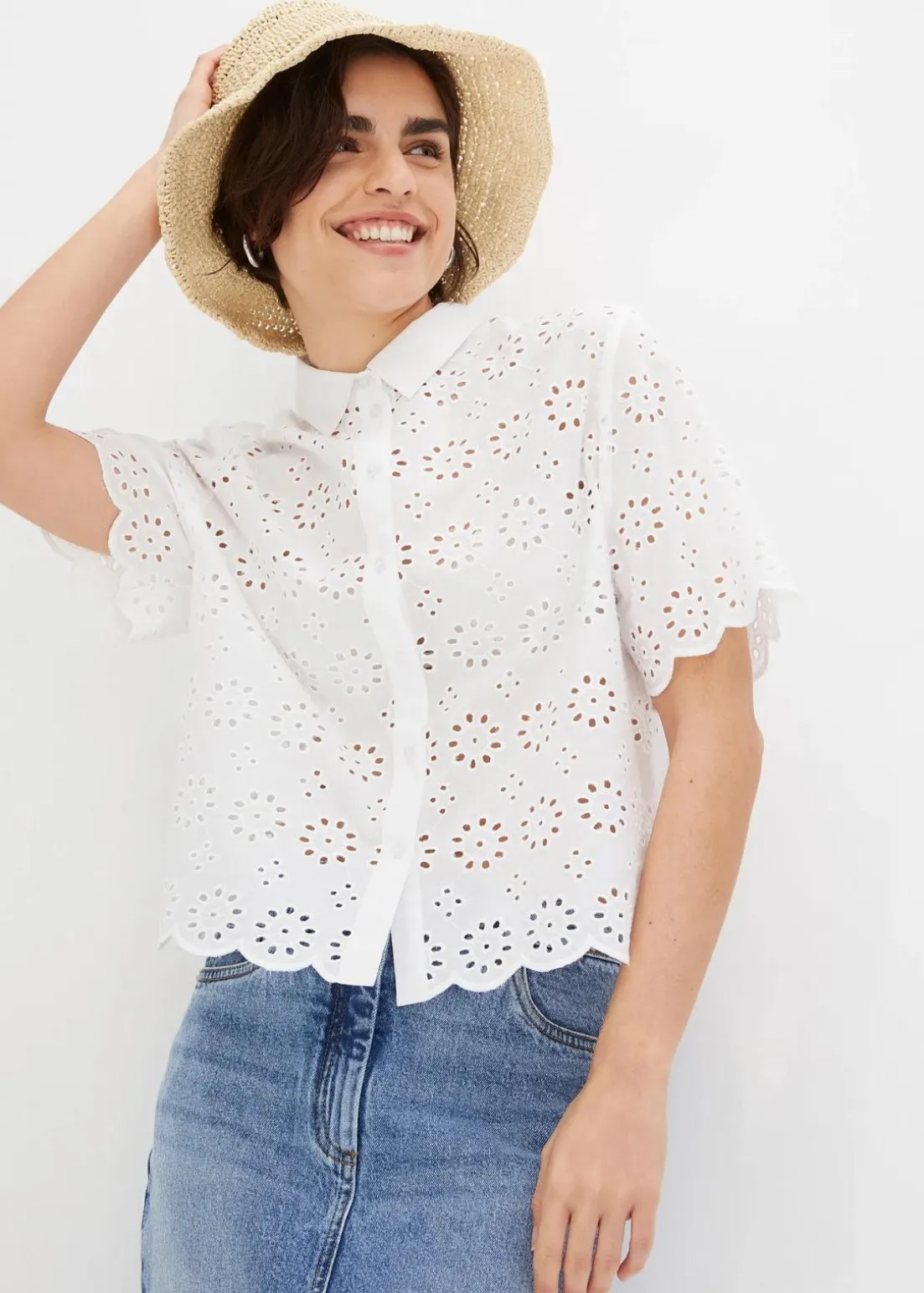 Bluse mit hochwertiger Lochstickerei