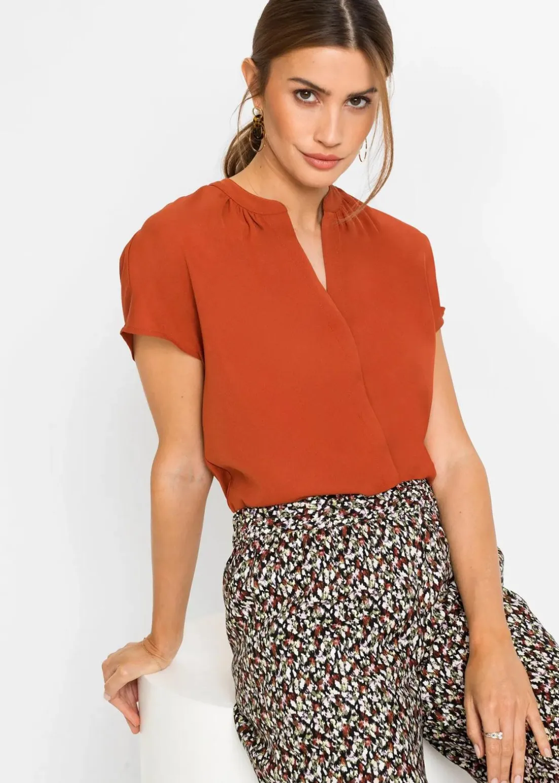 Stylische Bluse mit V-Ausschnitt und verdeckter Knopfleiste