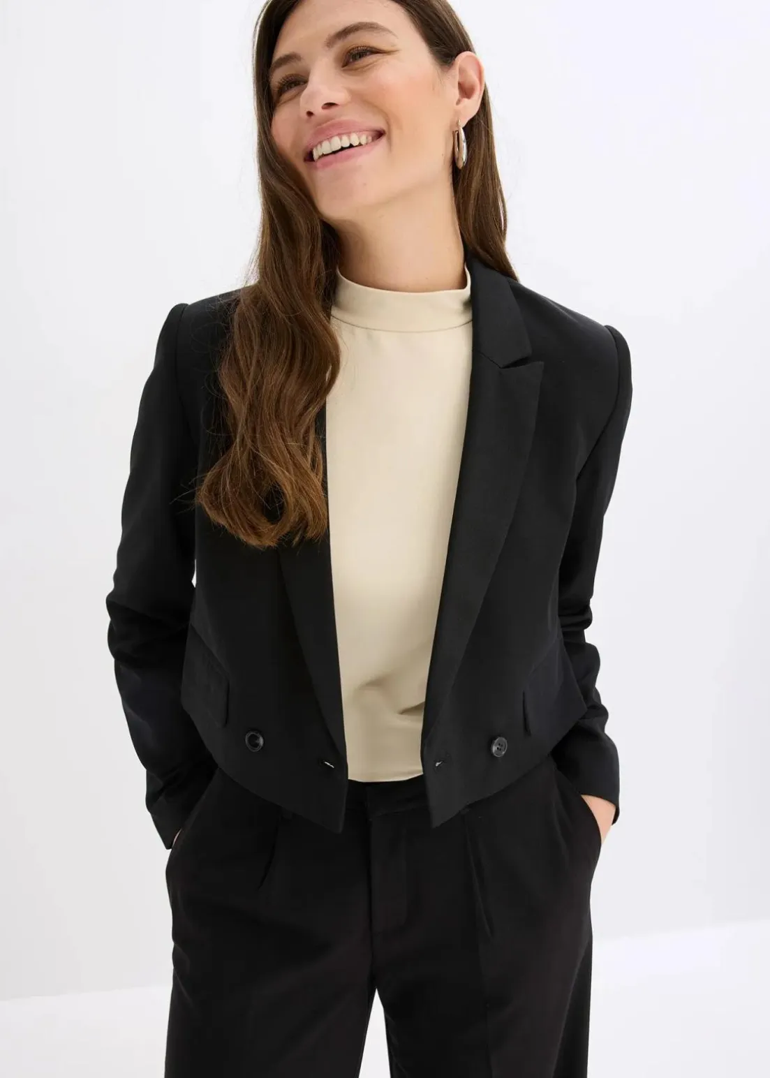Doppelreihiger kurzer Blazer mit Leistentaschen
