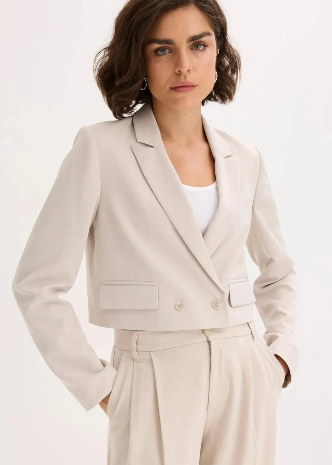 Doppelreihiger kurzer Blazer mit Leistentaschen