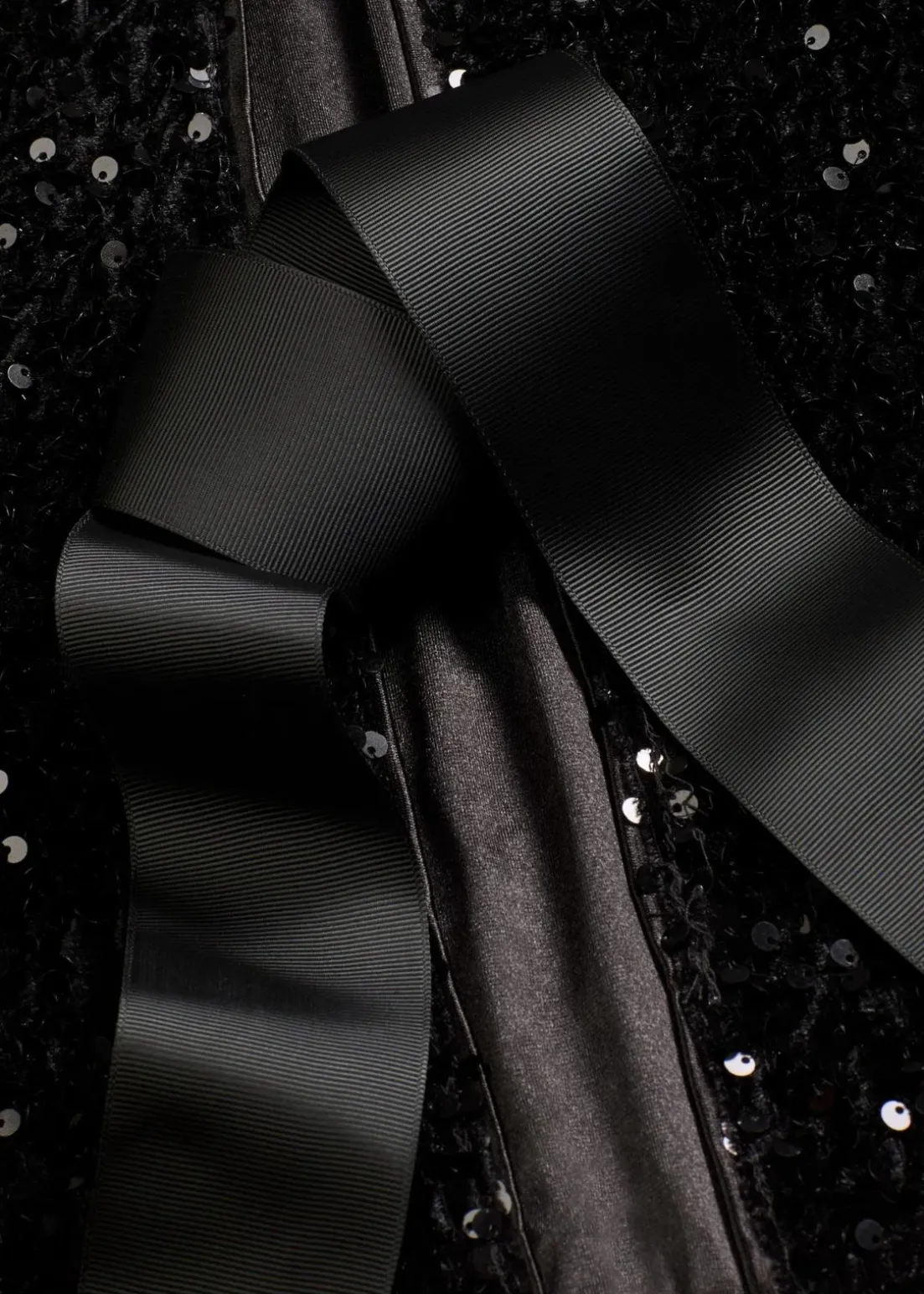 modische kurze Pailletten-Jacke mit Schleifen-Verschluss vorne. Gefüttert.