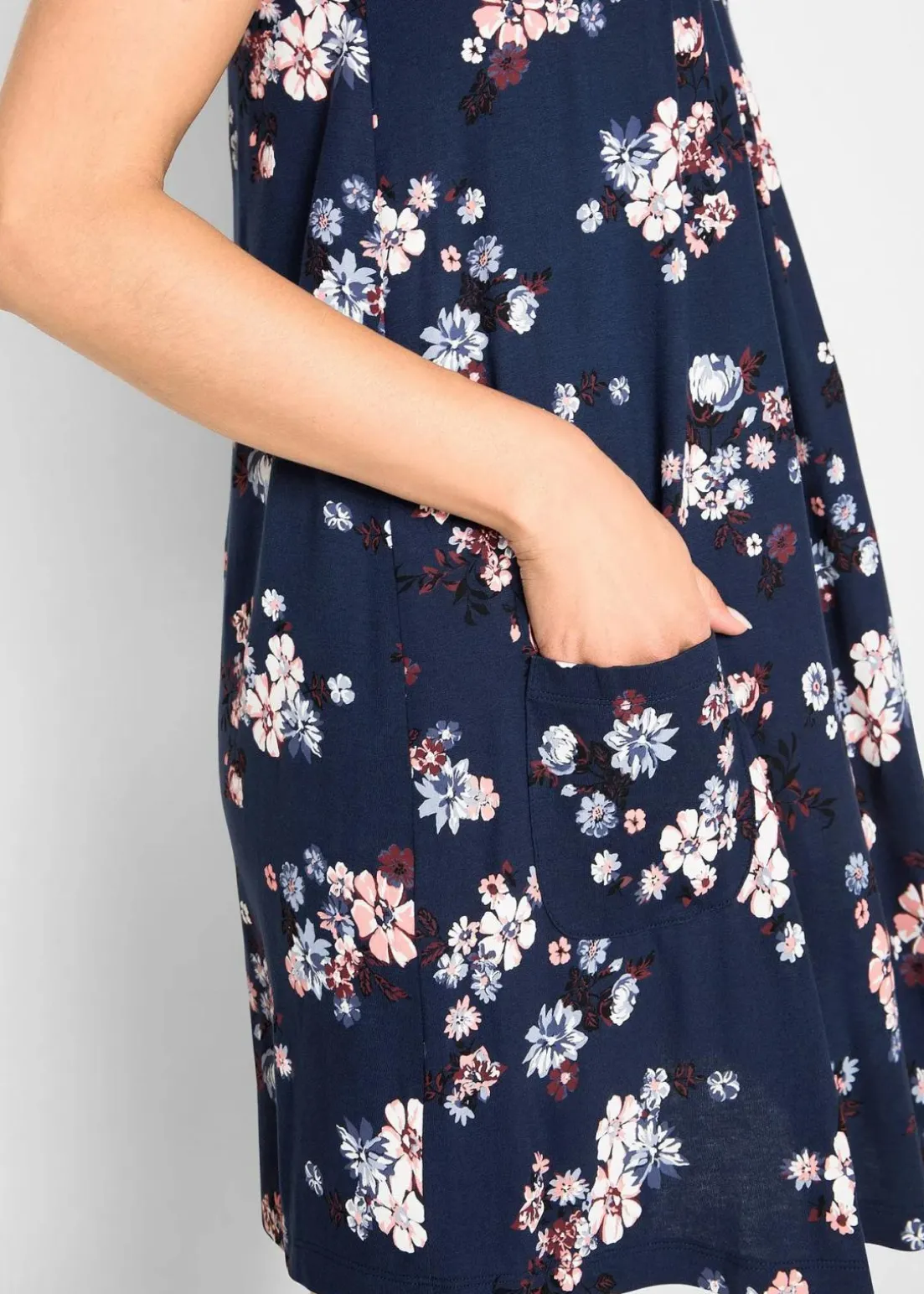 Figurumspielendes Jerseykleid aus nachhaltiger Viskose mit sommerlichem Druck.