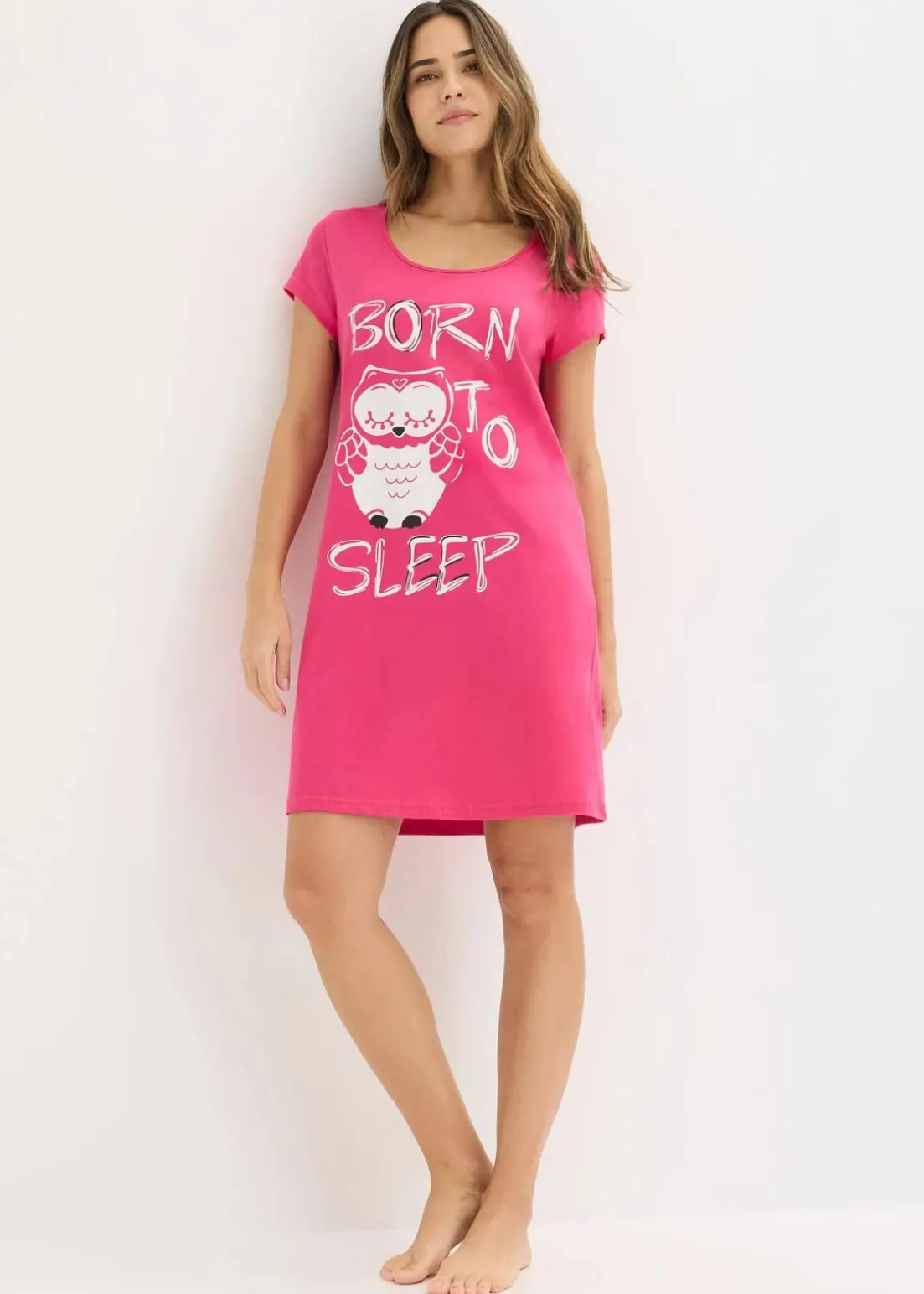Das praktische Nachthemd mit kurzen Ärmeln präsentiert sich mit einem modischen Druck auf der Vorderseite.Der weite Ausschnitt sorgt für Komfort beim Schlafen. Das Longshirt liegt durch seinen taillierten Schnitt angenehm auf der Haut. Es gehört mit seinem bequemen Stoff zu den Basics in jedem Kleiderschrank.