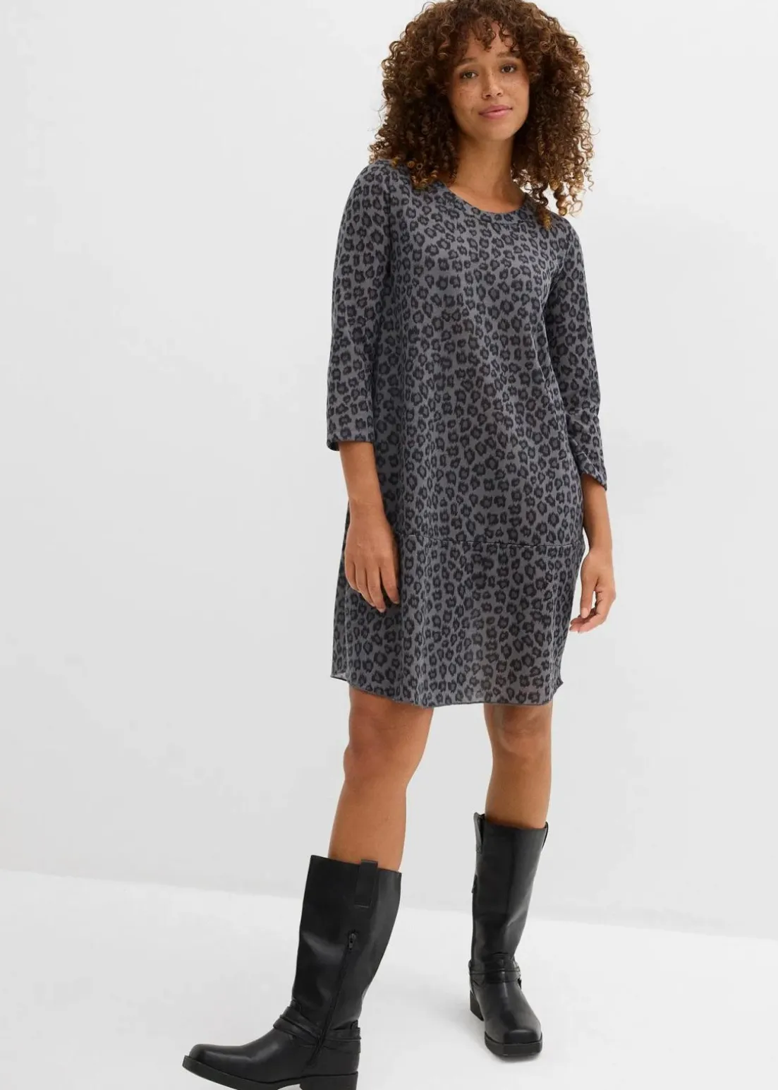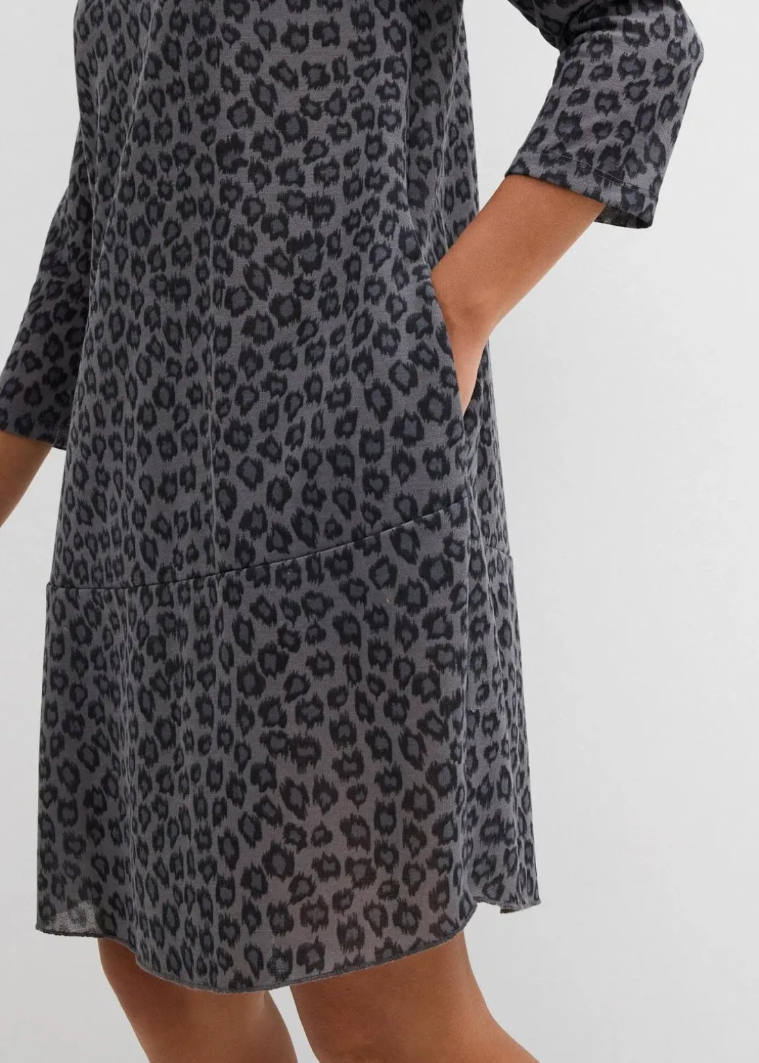 Trendiges Shirtkleid in Strickoptik mit Druck und 3/4 Ärmeln