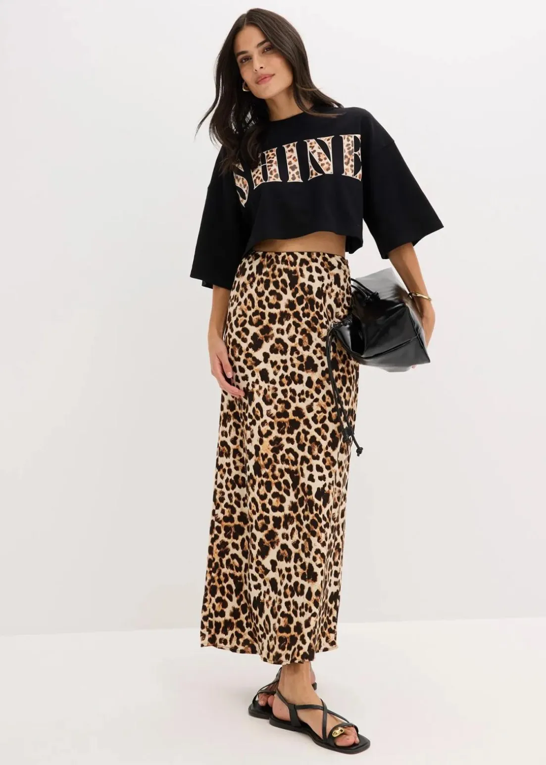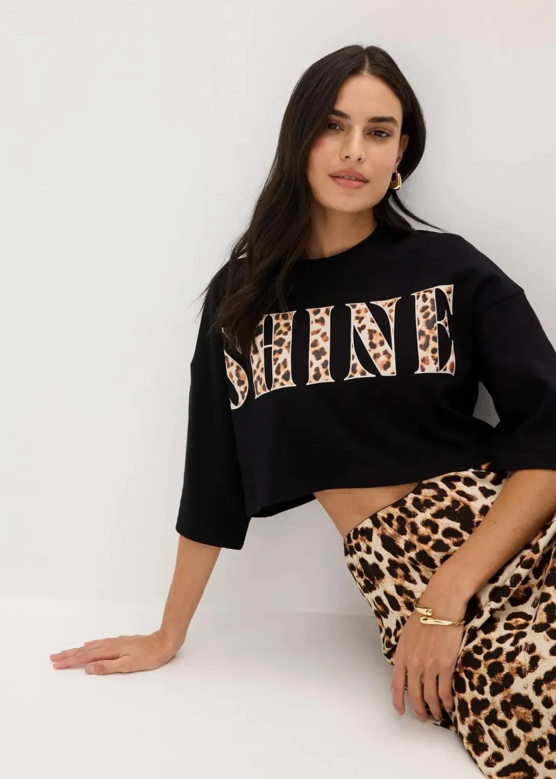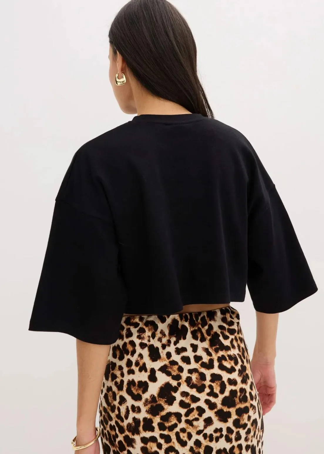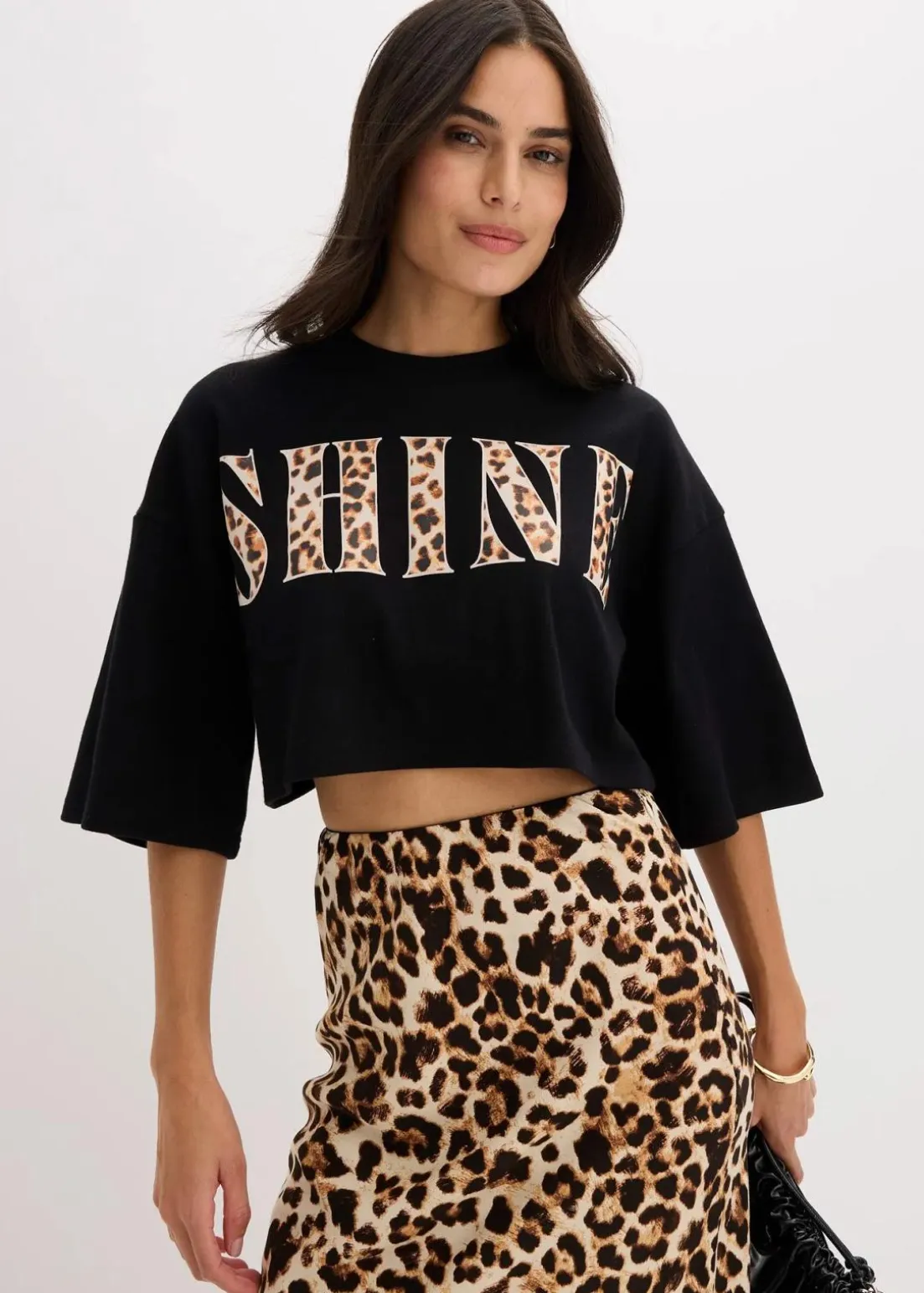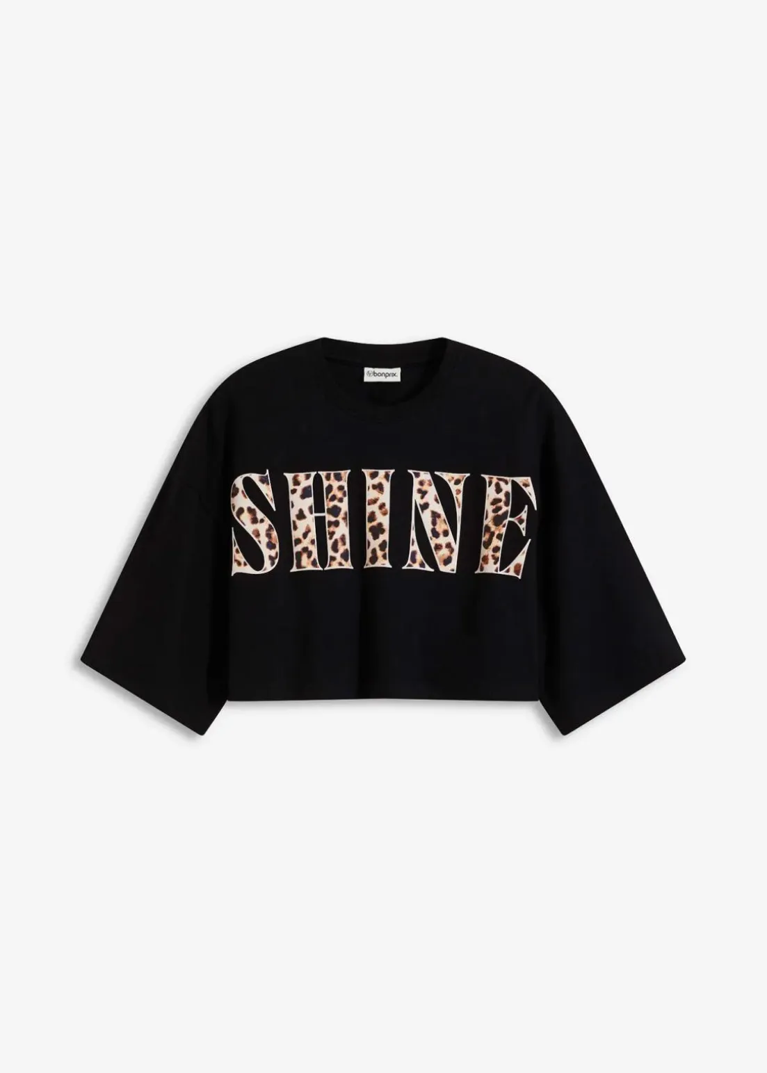 Lässiges kurz geschnittenes T-Shirt mit Leo-Schriftzug