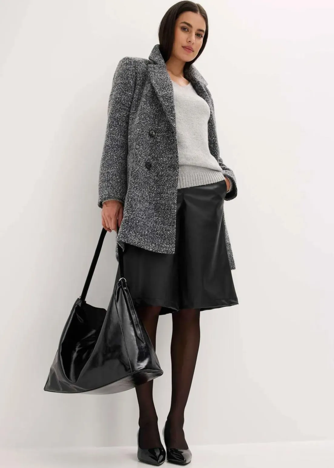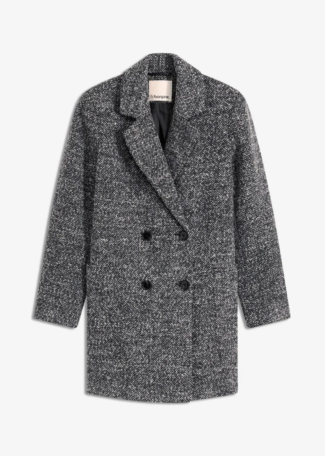 Zweireihiger Kurzmantel in melierter Wolloptik mit bequemen Tragekomfort