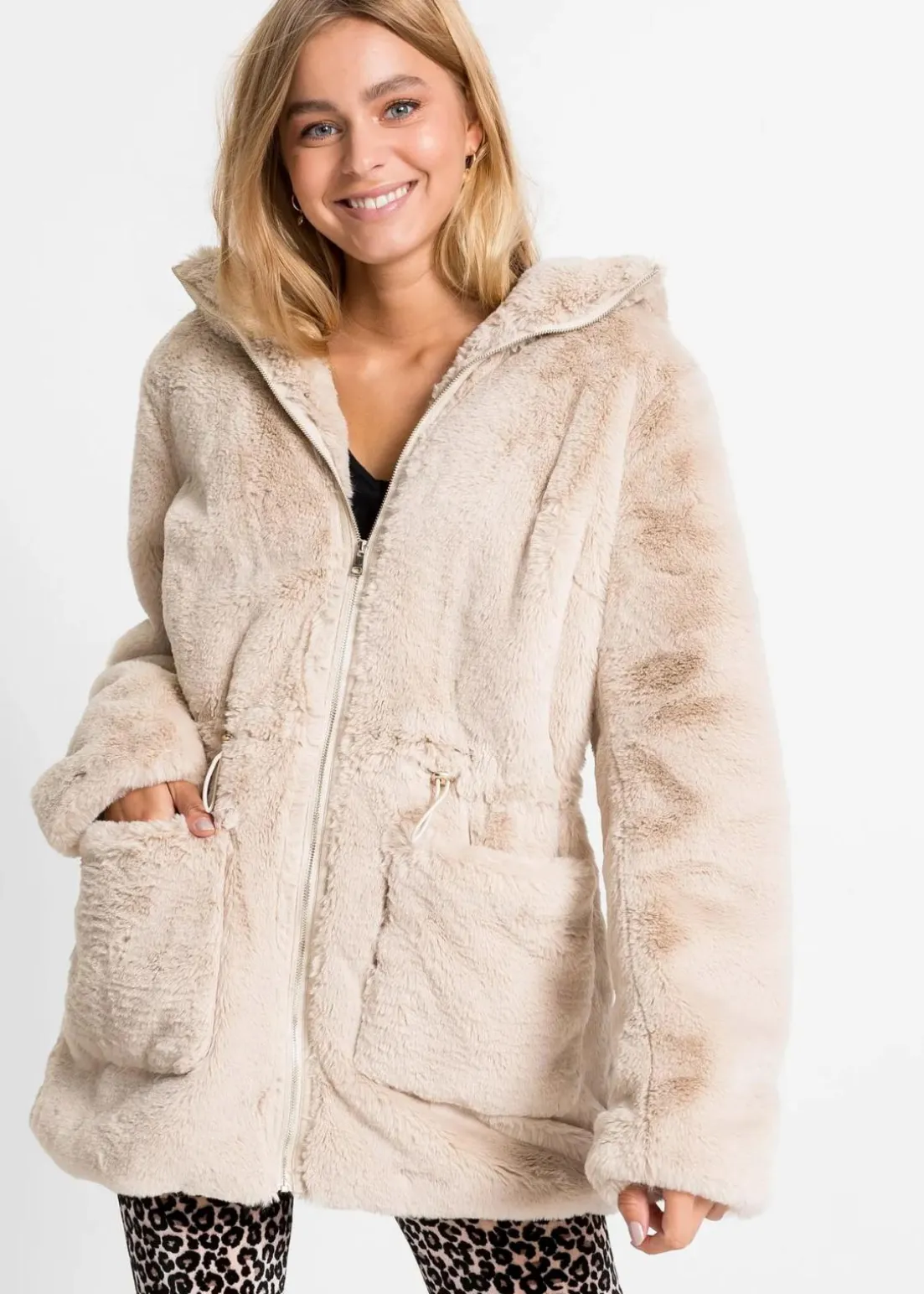 Kuschelweiche Fellimitat-Jacke mit Taillenbund