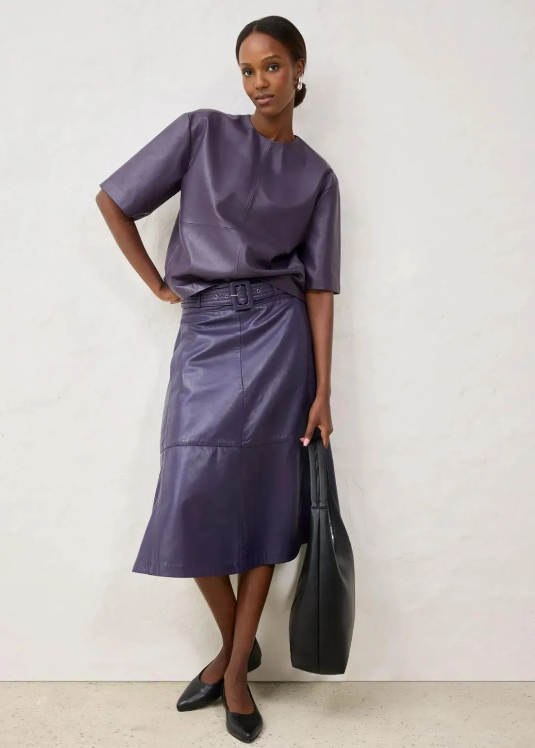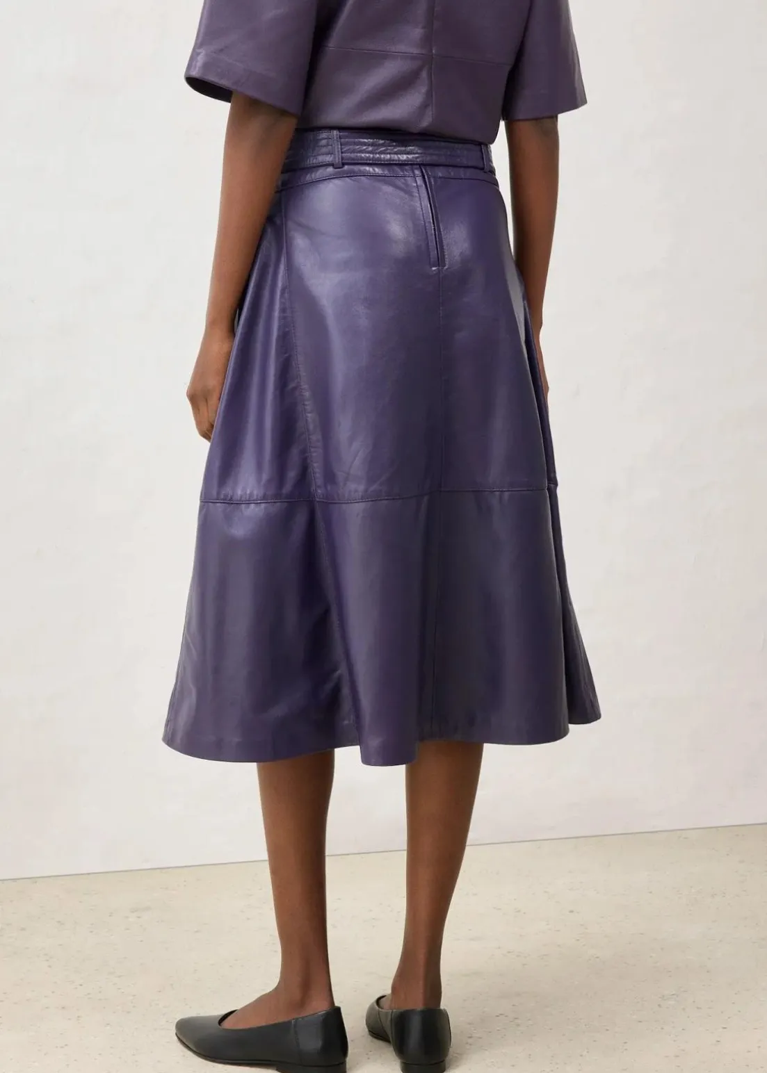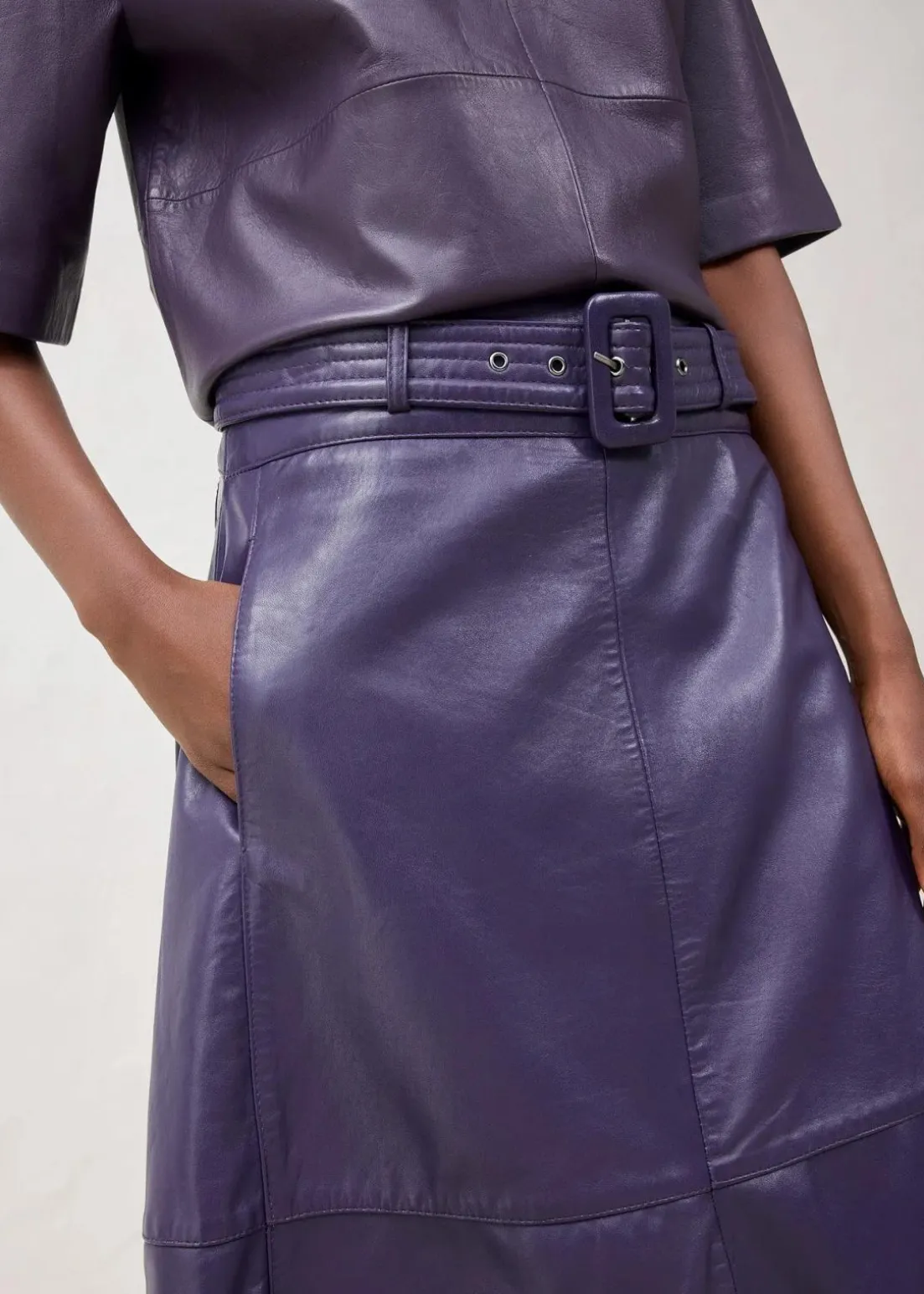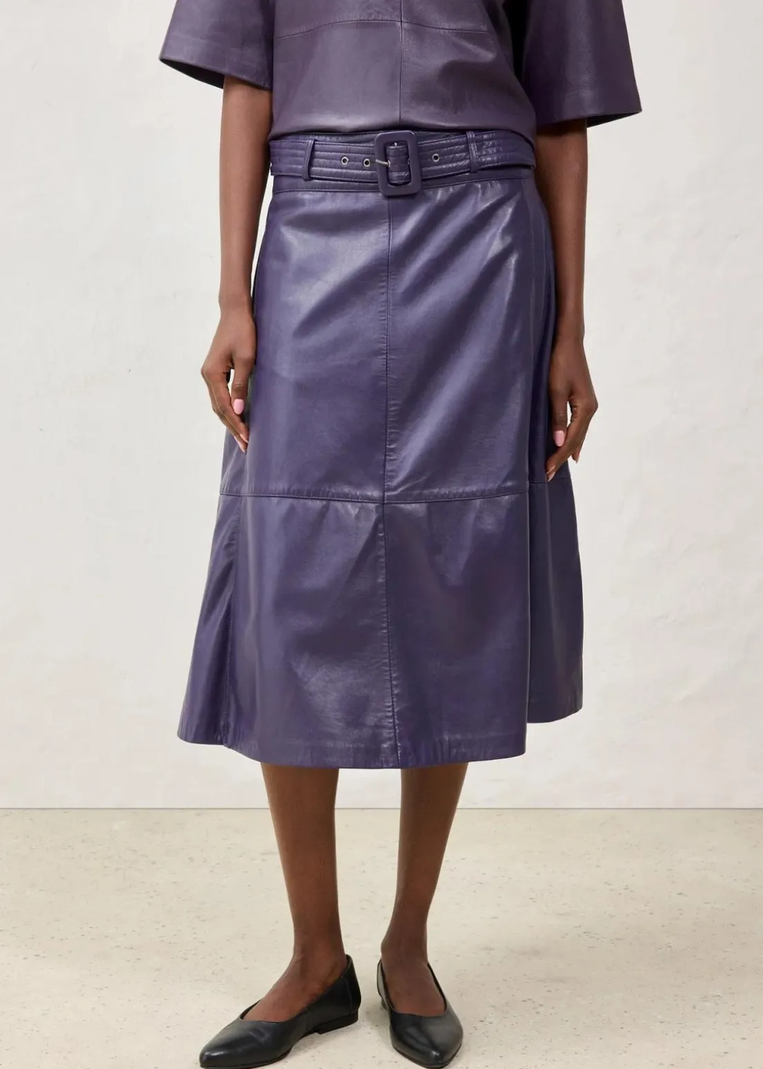 eleganter Rock in A-Linie aus Lammnappa mit Gürtel