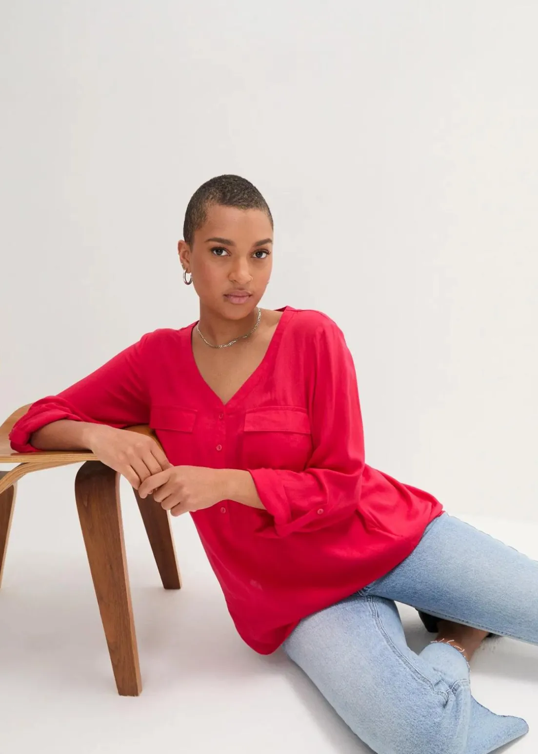 Figurschmeichelnde Bluse mit Ärmeln zum Krempeln