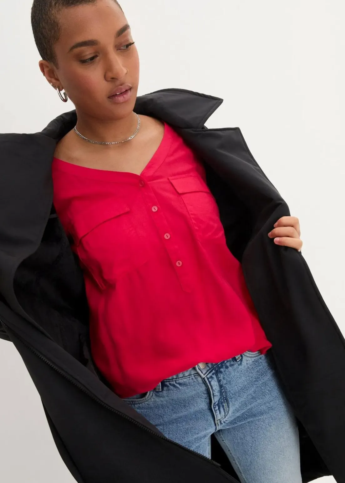 - Passformvorteile:streckender V-Ausschnitt, umspielt den Bauch