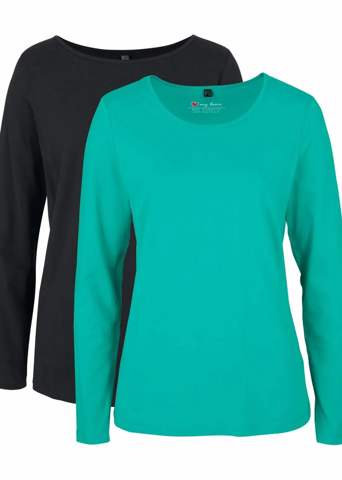 Basic Stretch-Shirt im Doppelpack, langärmelig