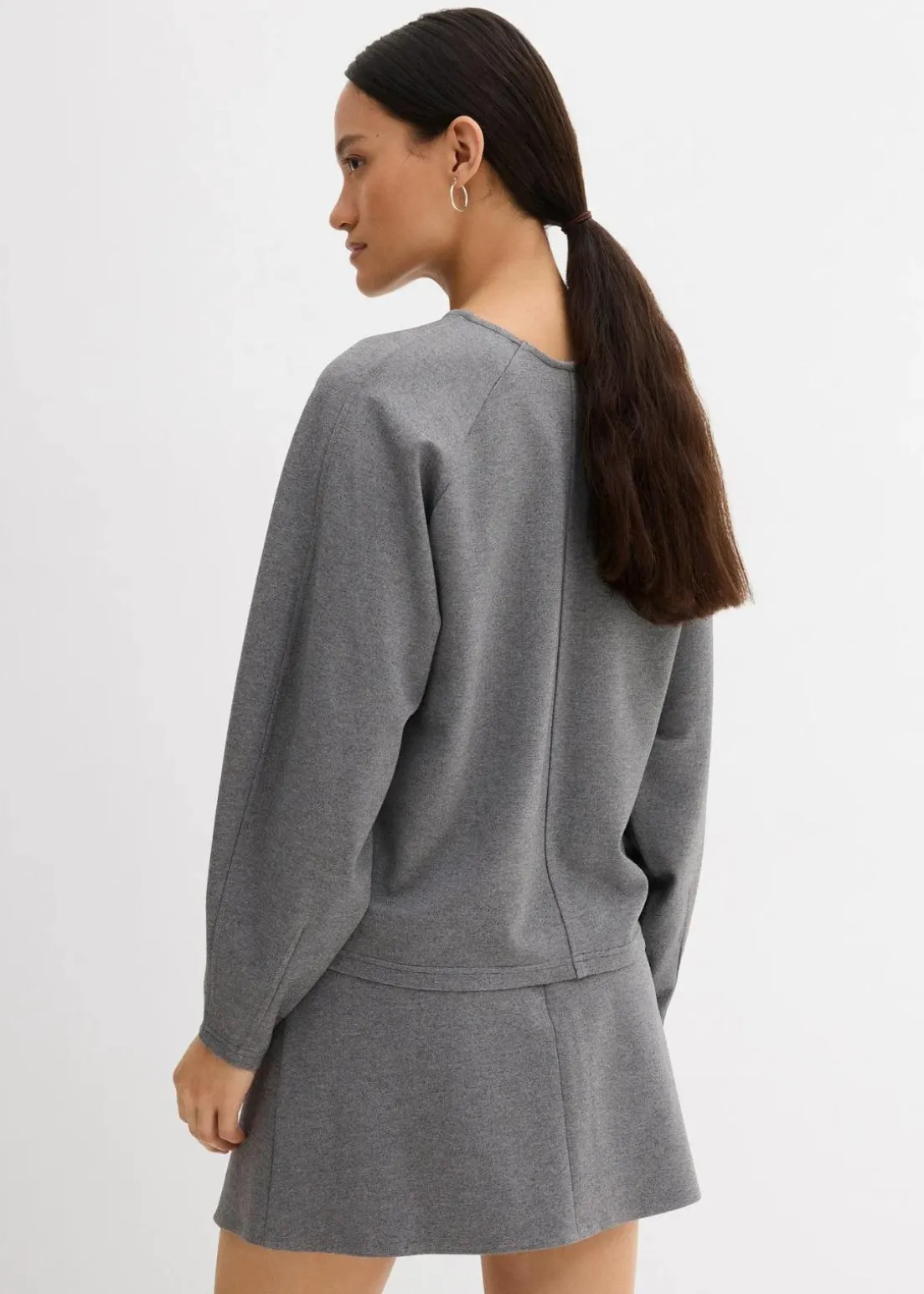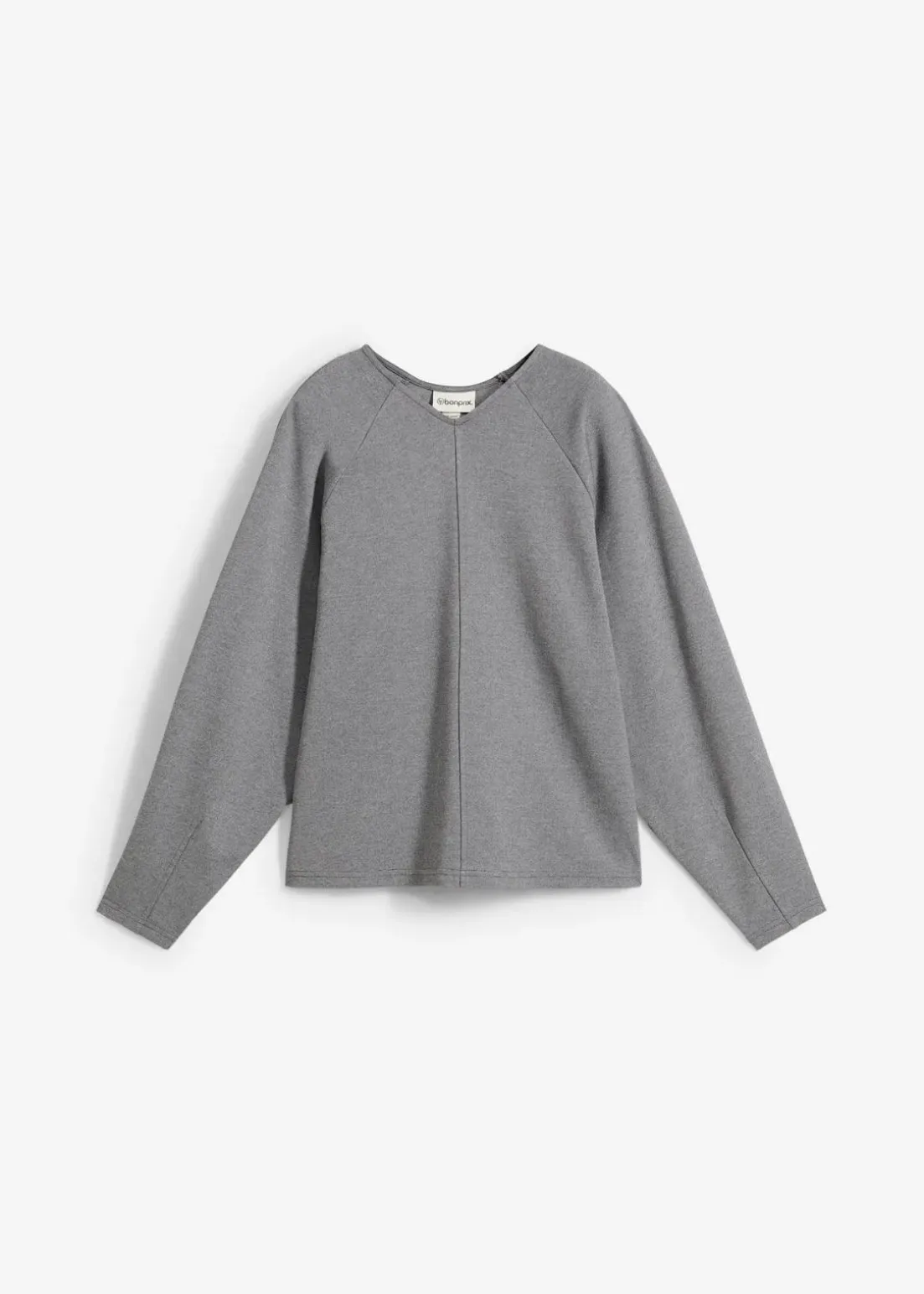 Gerade geschnittenes Langarmshirt mit eingefasstem V-Ausschnitt sowie Teilungsnaht vorne und hinten
