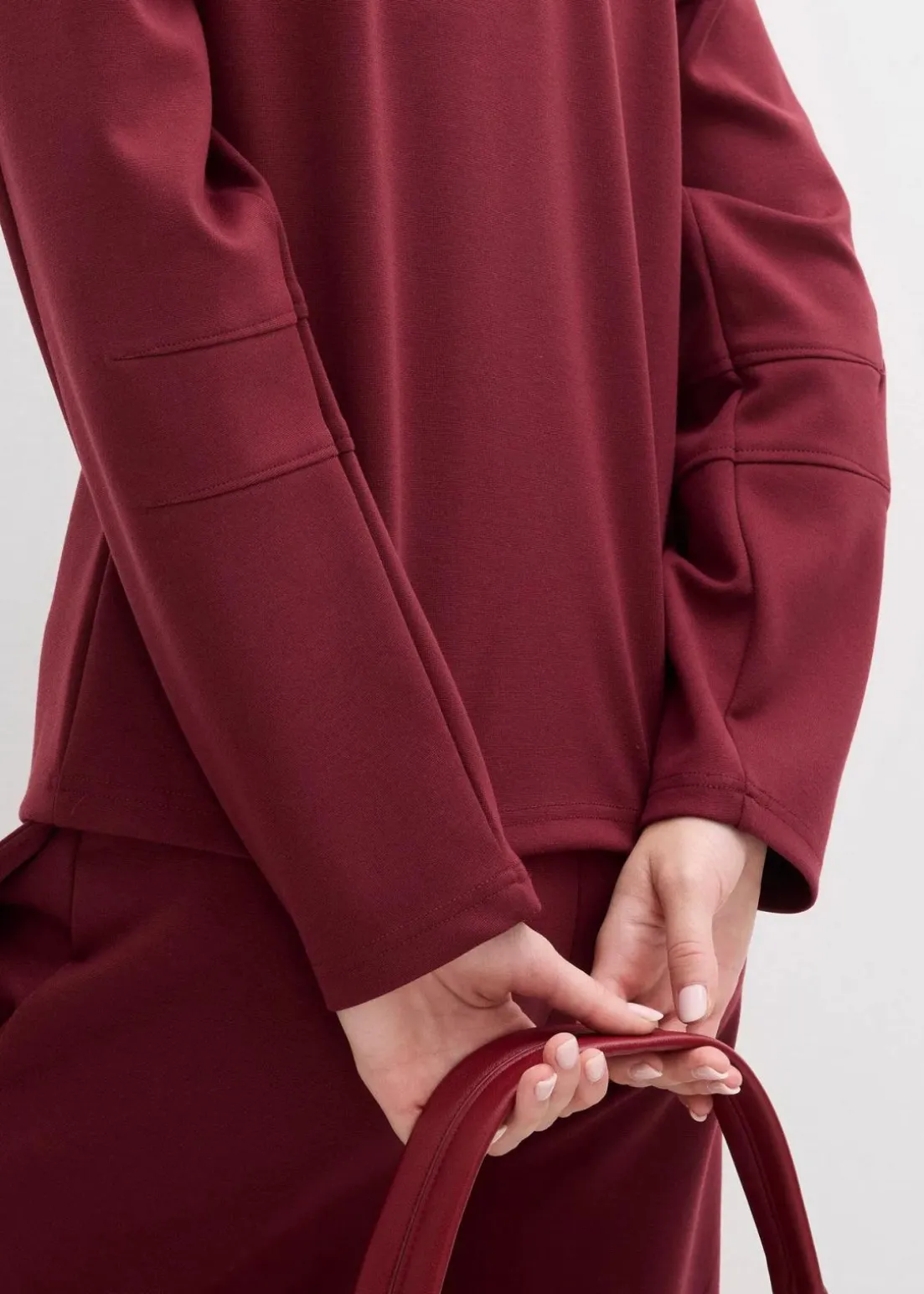 Langarmshirt aus Punto die Roma mit Rundhalsausschnitt sowie Abnähern vorne und an den Ärmeln