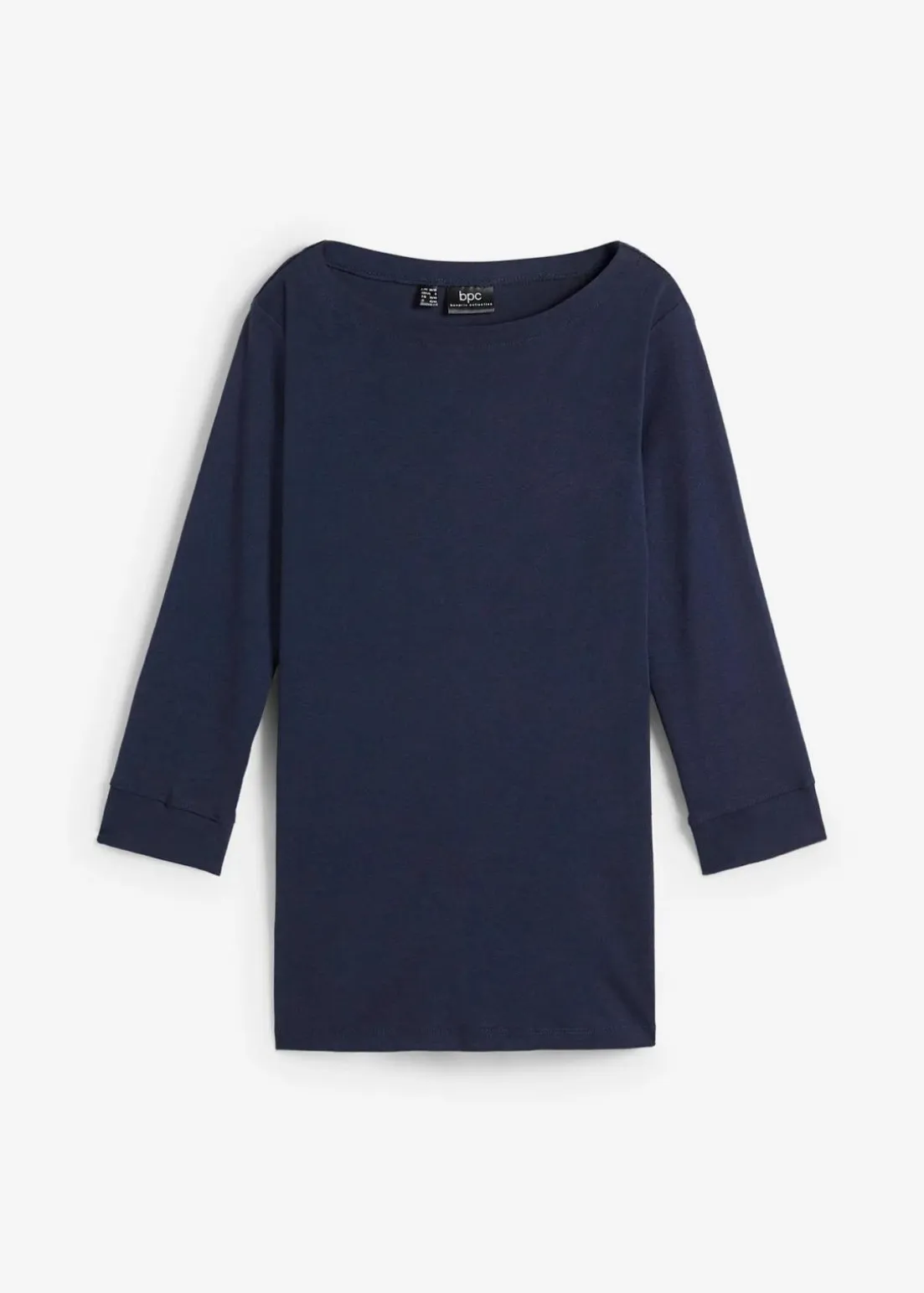 Bequemes Stretch-Shirt mit 3/4 Ärmeln und U-Boot Ausschnitt