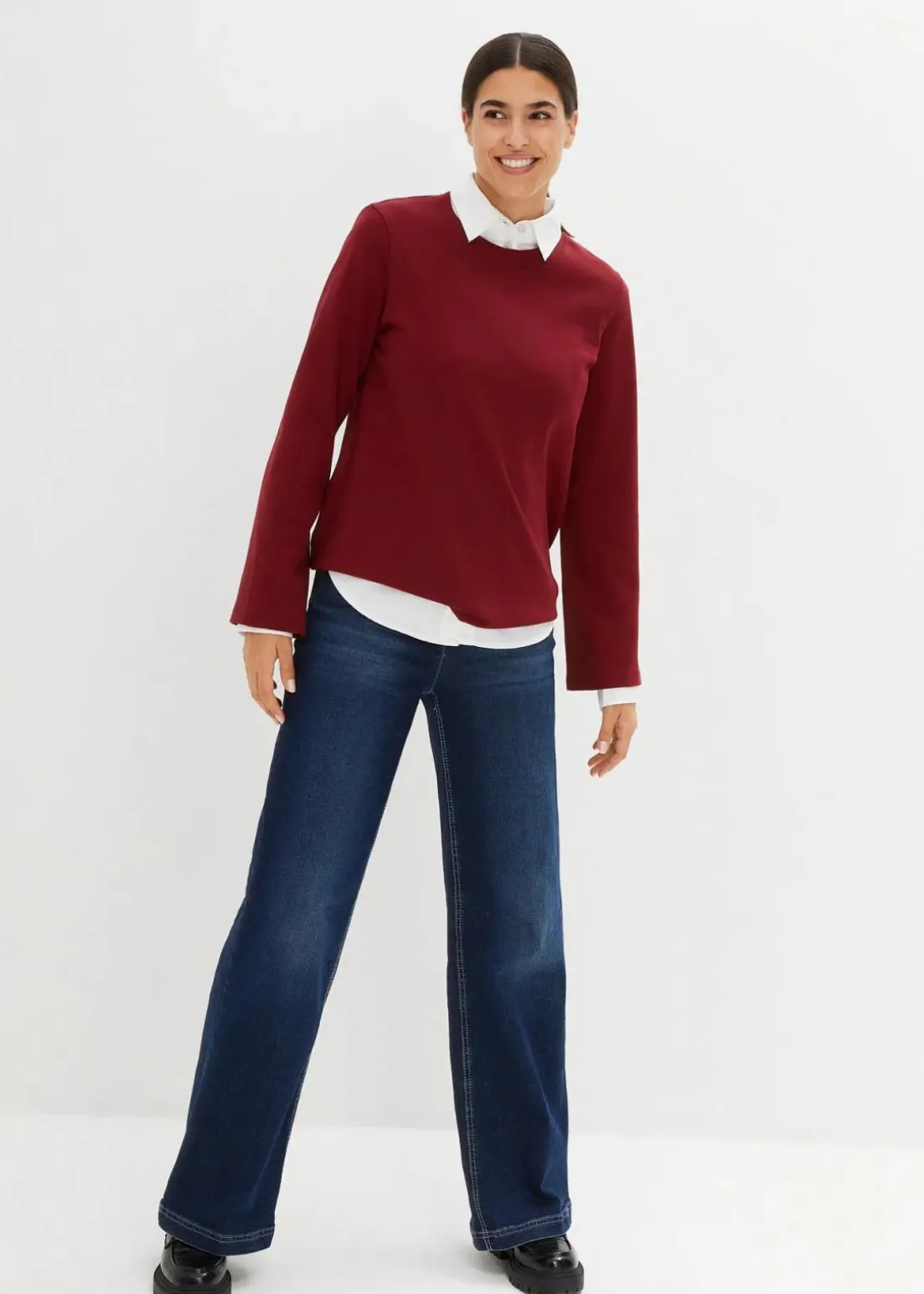 Bequemes Rundhalsshirt aus reiner Baumwolle
