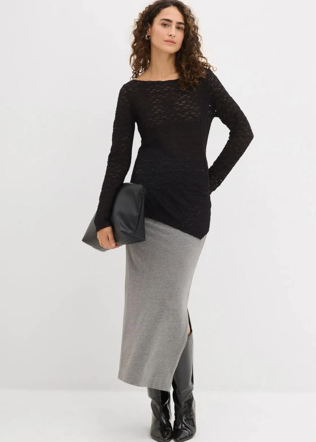 Figurbetontes Langarmshirt aus Spitze