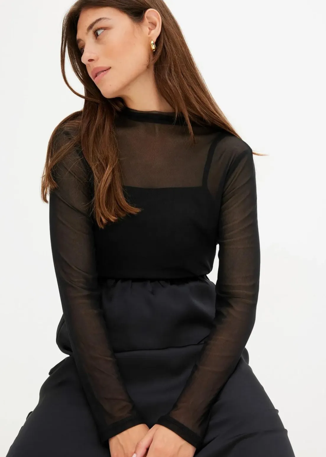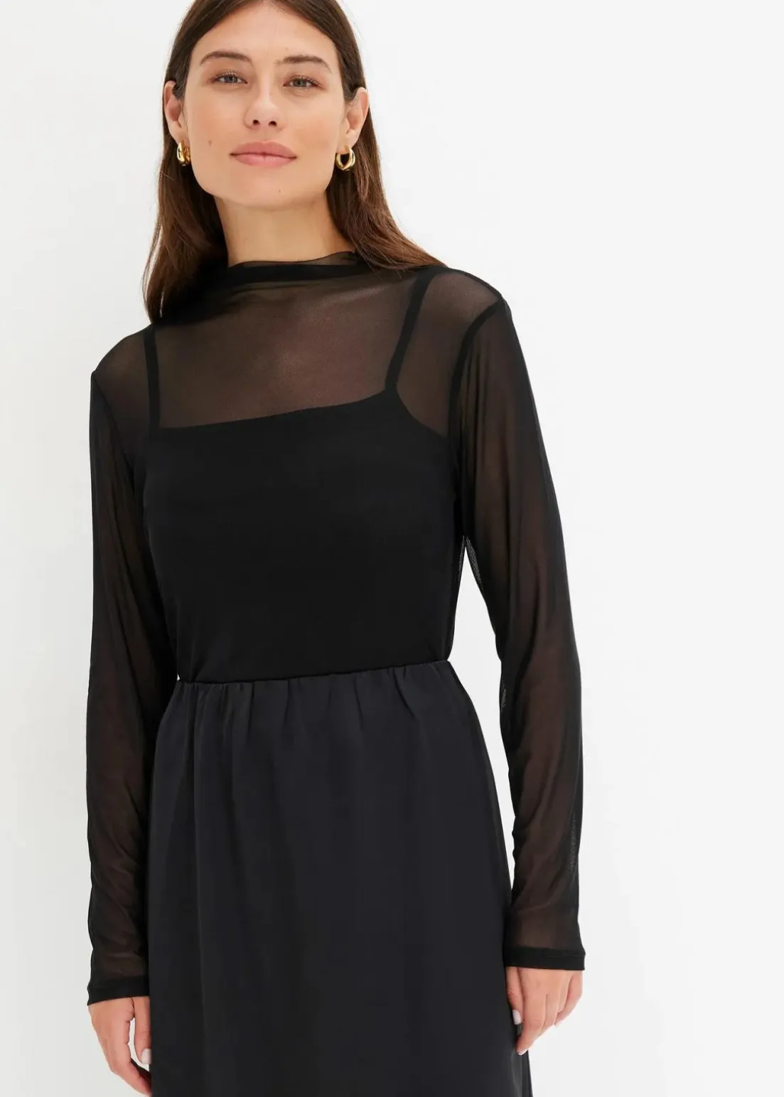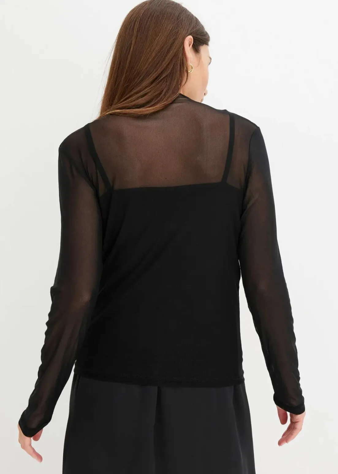 Figurbetontes Mesh-Langarmshirt mit Stehkragen