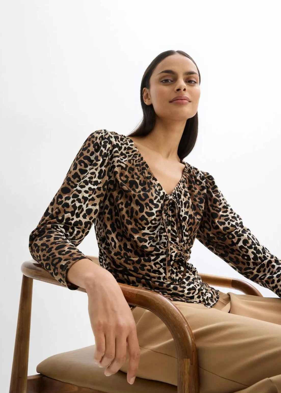 Modisches Shirt mit 7/8 Puffärmeln und Schleife am Ausschnitt