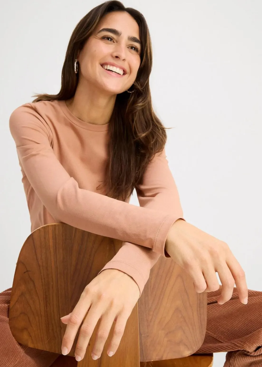 Enganliegendes Langarmshirt mit Rundhalsausschnitt