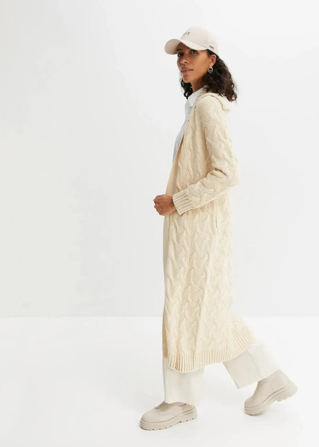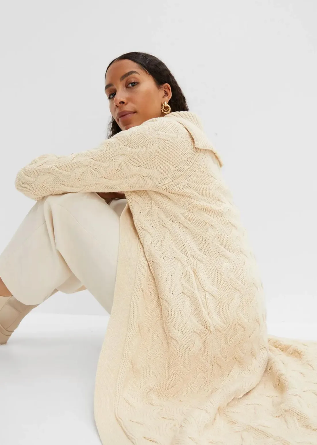 Weit geschnittener Strickmantel in vorteilhafter Maxi-Länge