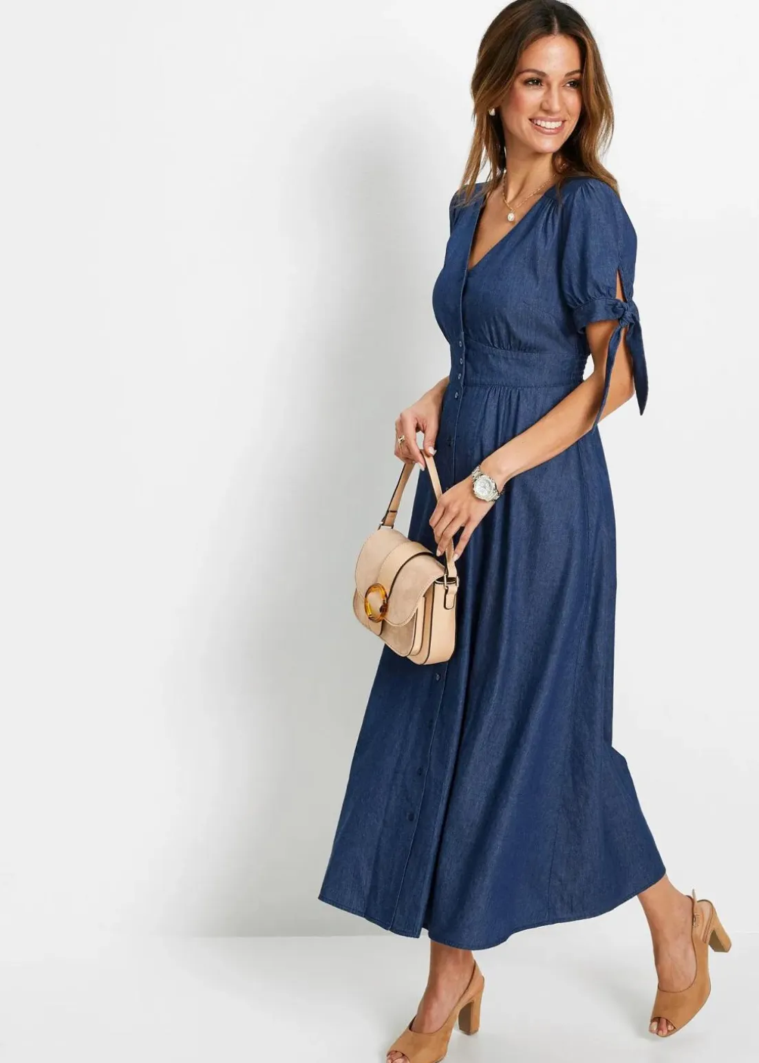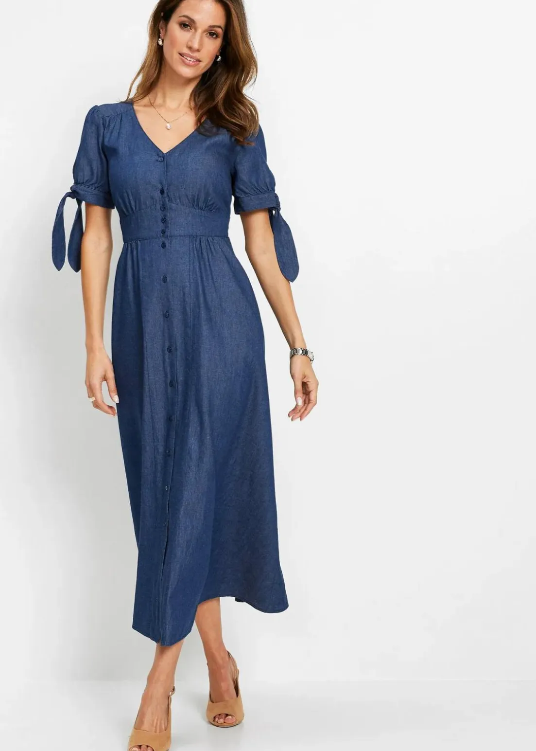 Sommerliches Jeanskleid mit Knoten an den Ärmeln