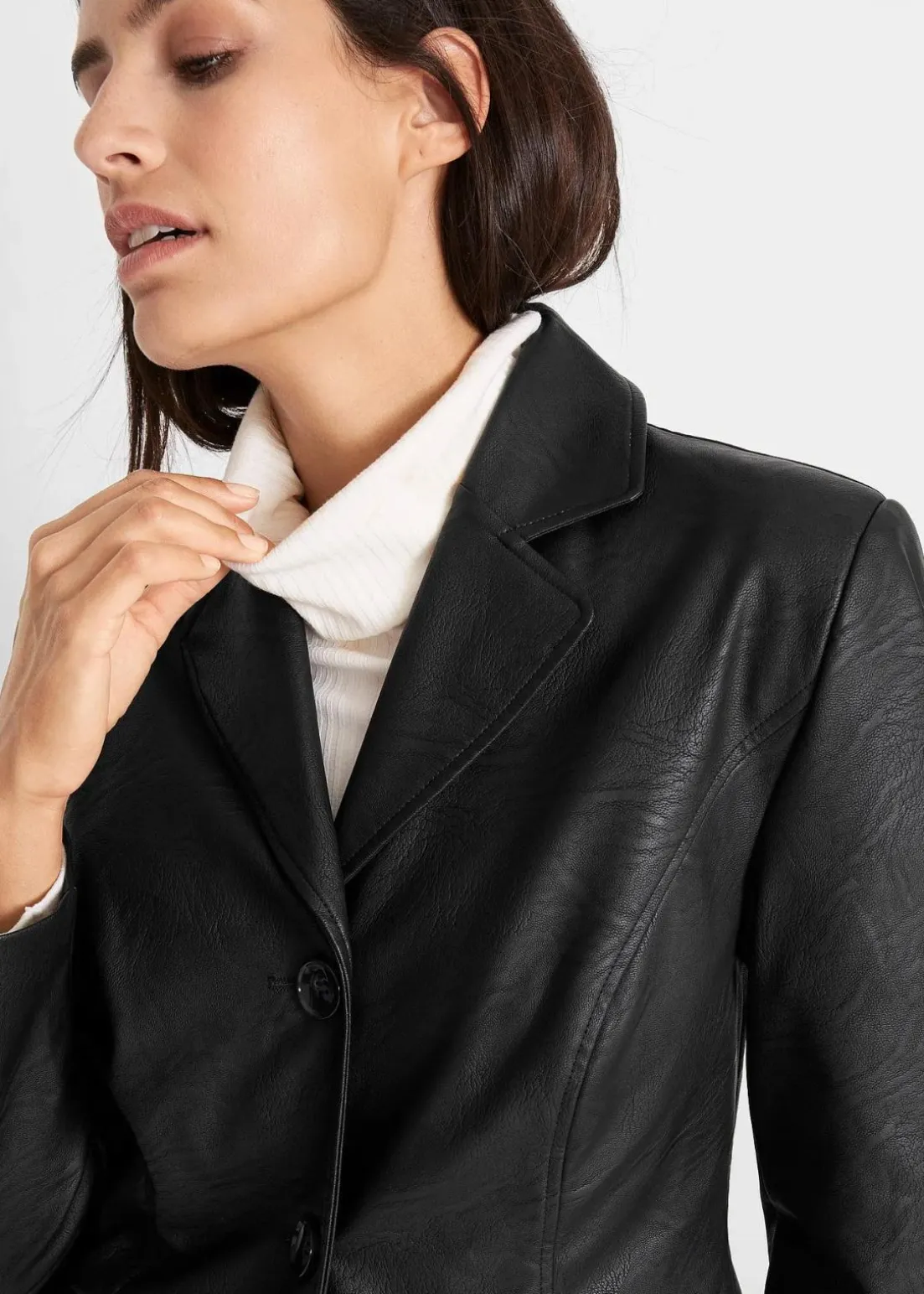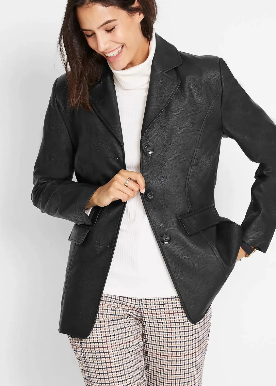 Wunderschöner Lederimitat-Longblazer mit leichter Taillierung
