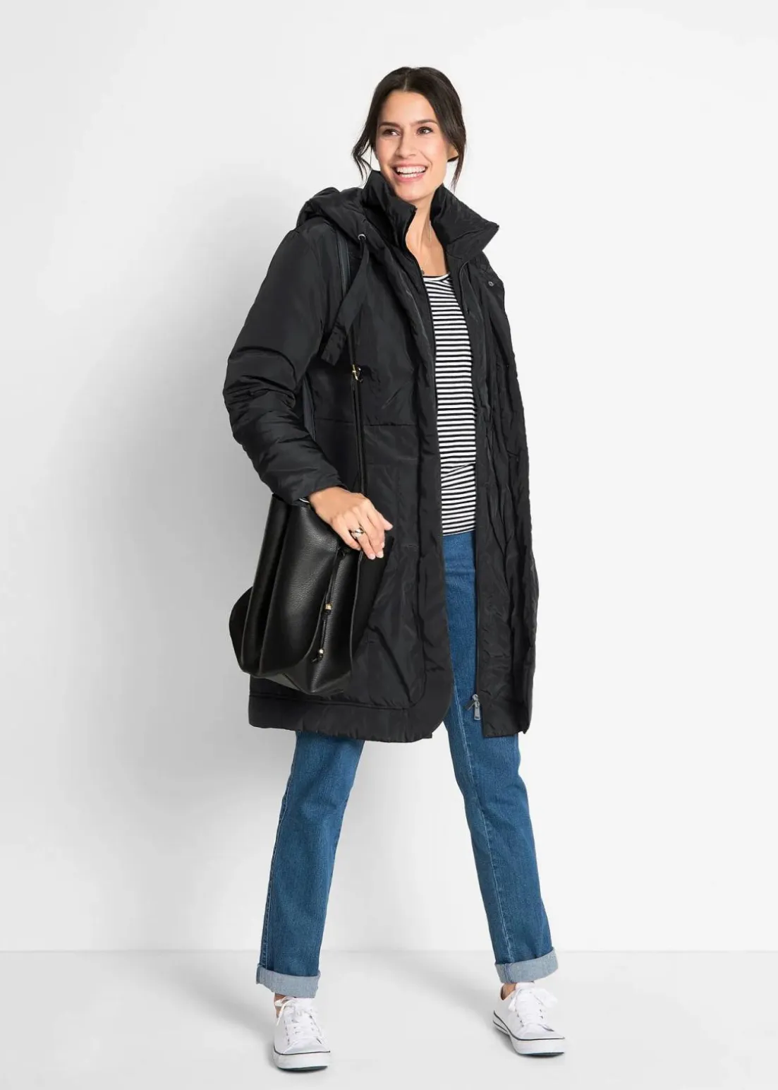 Mit diesem Mantel der Marke bpc sind Sie in der kalten Jahreszeit warm angezogen. Er überzeugt mit einer guten Fütterung und einer figurumspielenden Passform. Ein besonderer Hingucker ist die verspielte 2-in-1-Optik: Innen ist das Modell per Reißverschluss zu schließen, außen mit Knöpfen.Der gefütterte Mantel zeichnet sich durch eine weitenregulierbare Kapuze und einen Stehkragen aus.