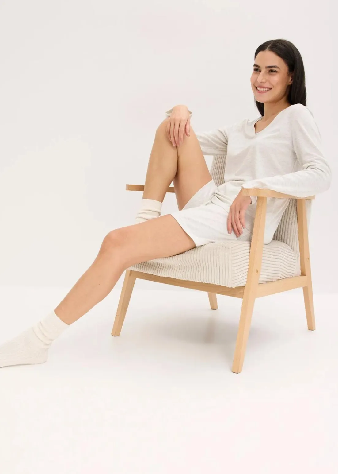 Gemütlicher Loungewear Shorty mit einem locker geschnittenen Langarmshirt und einer kurzen Hose