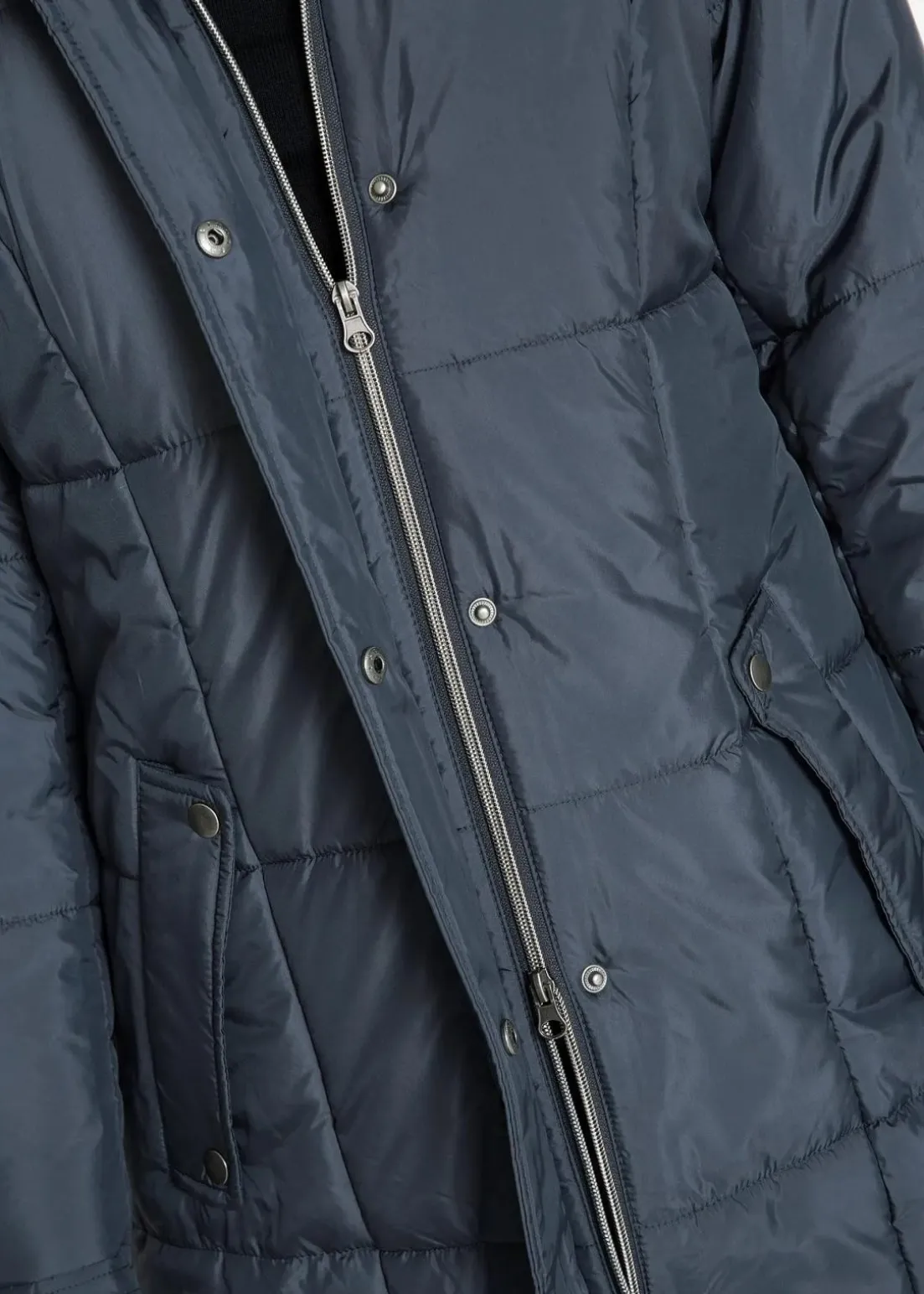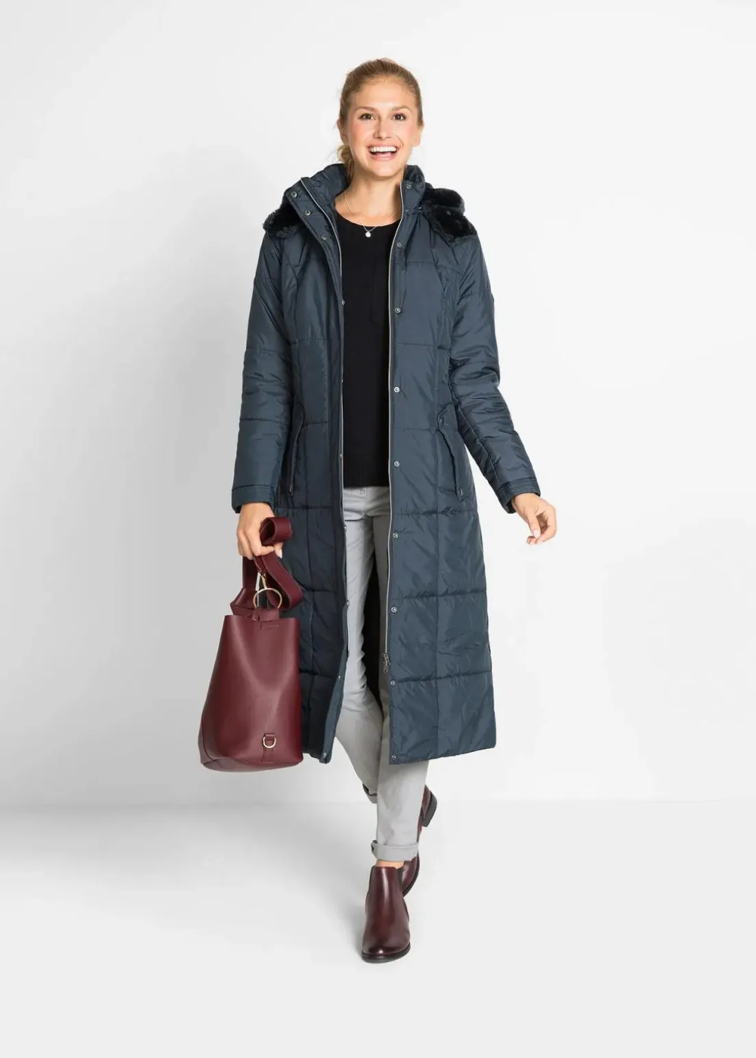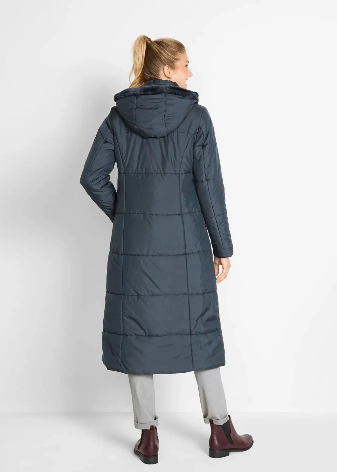 Ansprechender Langmantel mit Steppung und abnehmbarer Kapuze