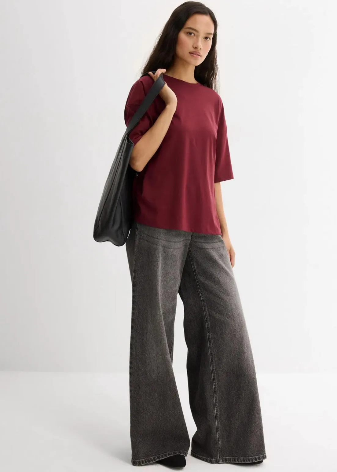 T-Shirt mit lockerer Passform mit einem gerippten Rundhalsausschnitt sowie verlängerten kurzen Ärmel