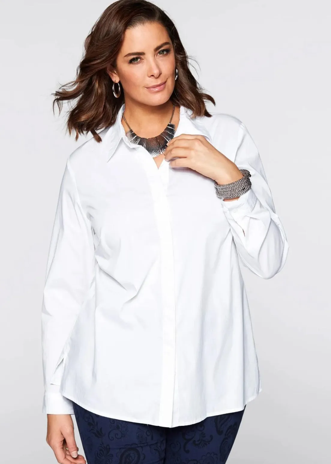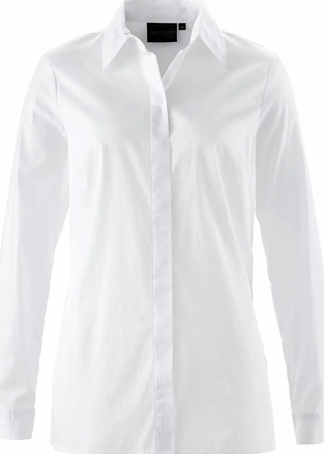 Zeitlose Long-Stretchbluse mit verdeckter Knopfleiste