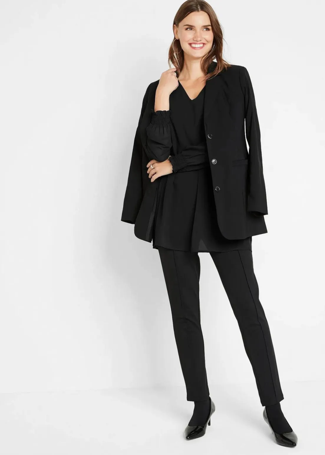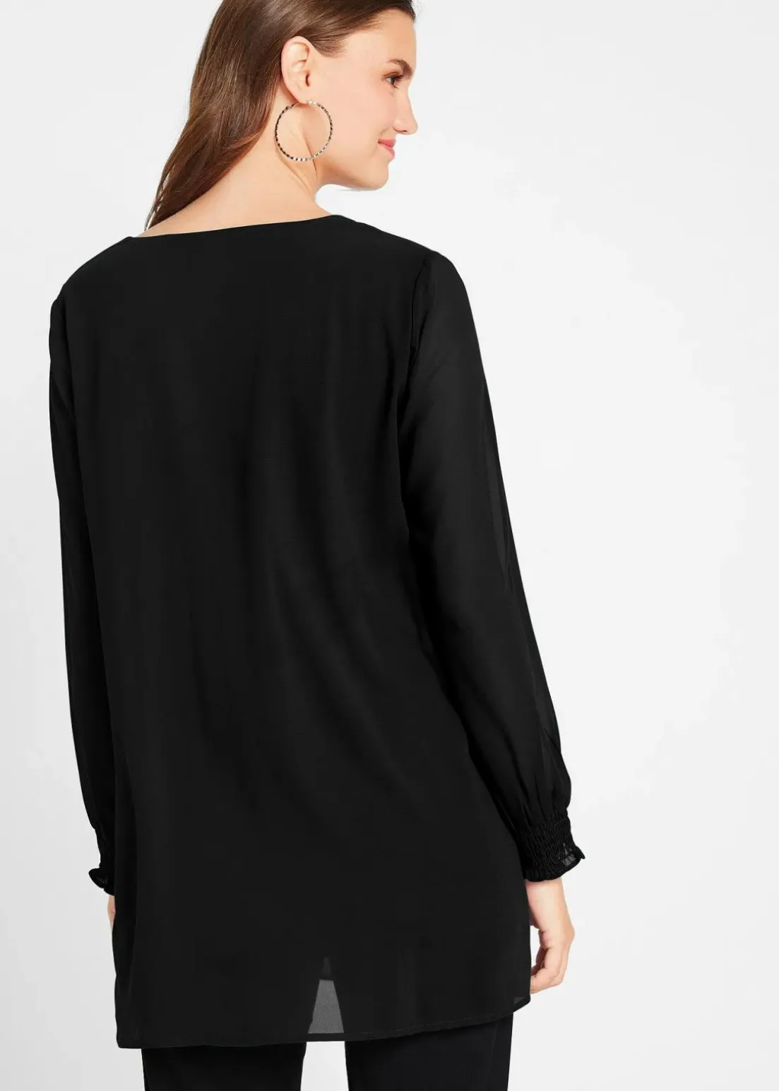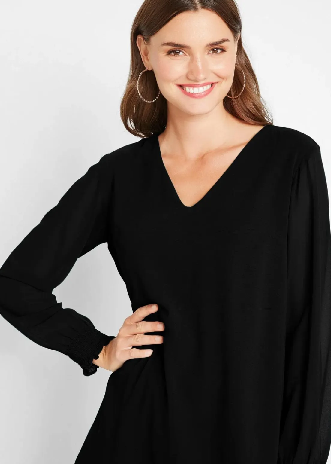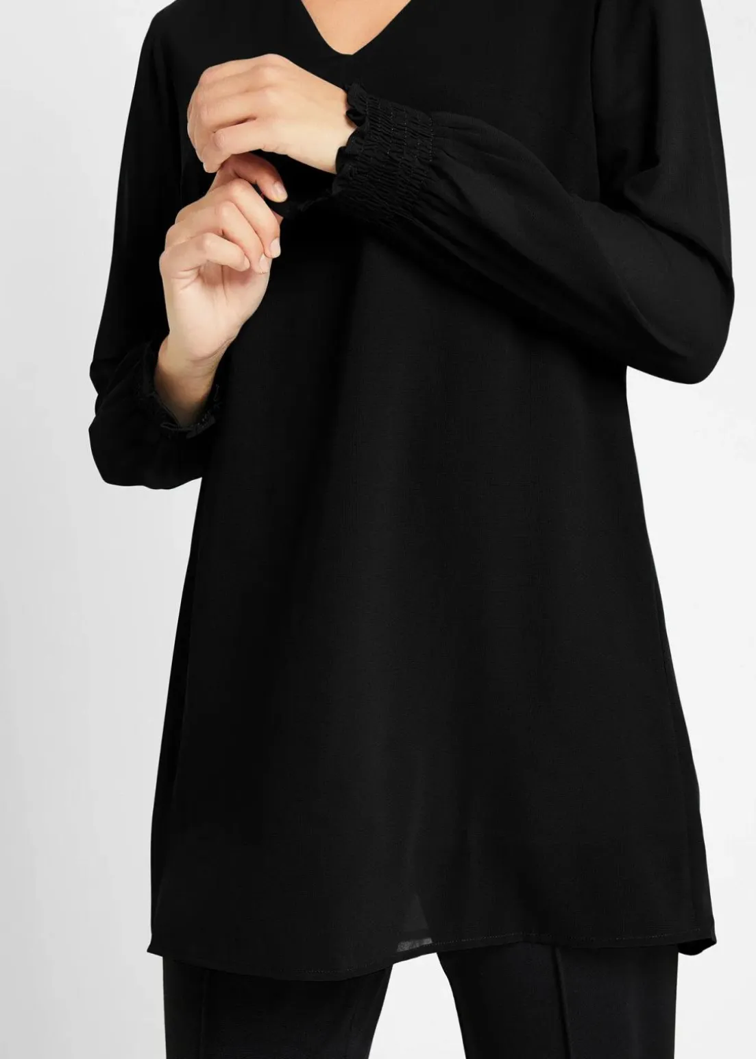 Schick kombinierbare Tunikabluse mit gesmoktem Ärmelsaum