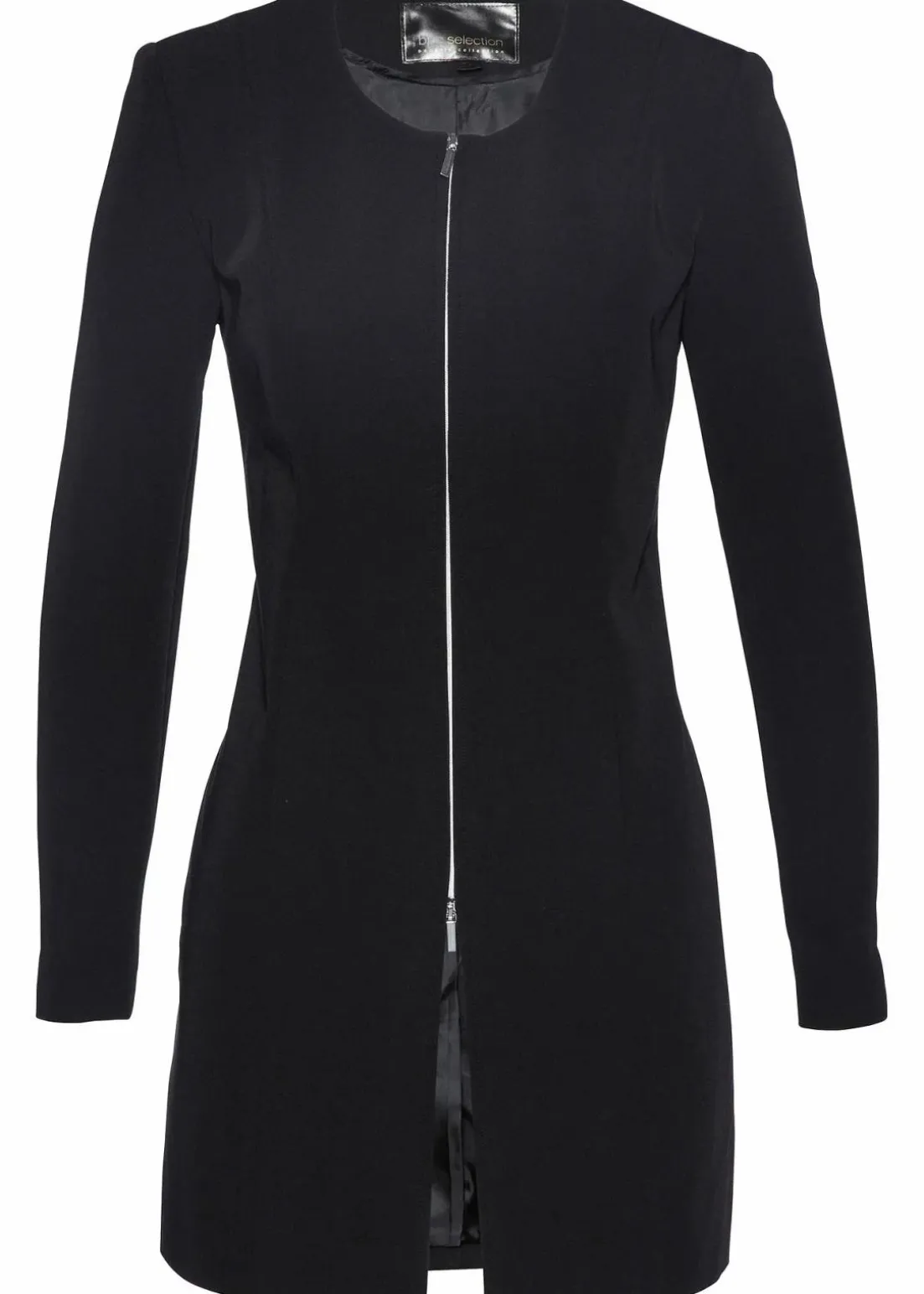Klassischer Kragenloser Longblazer mit Reißverschluss