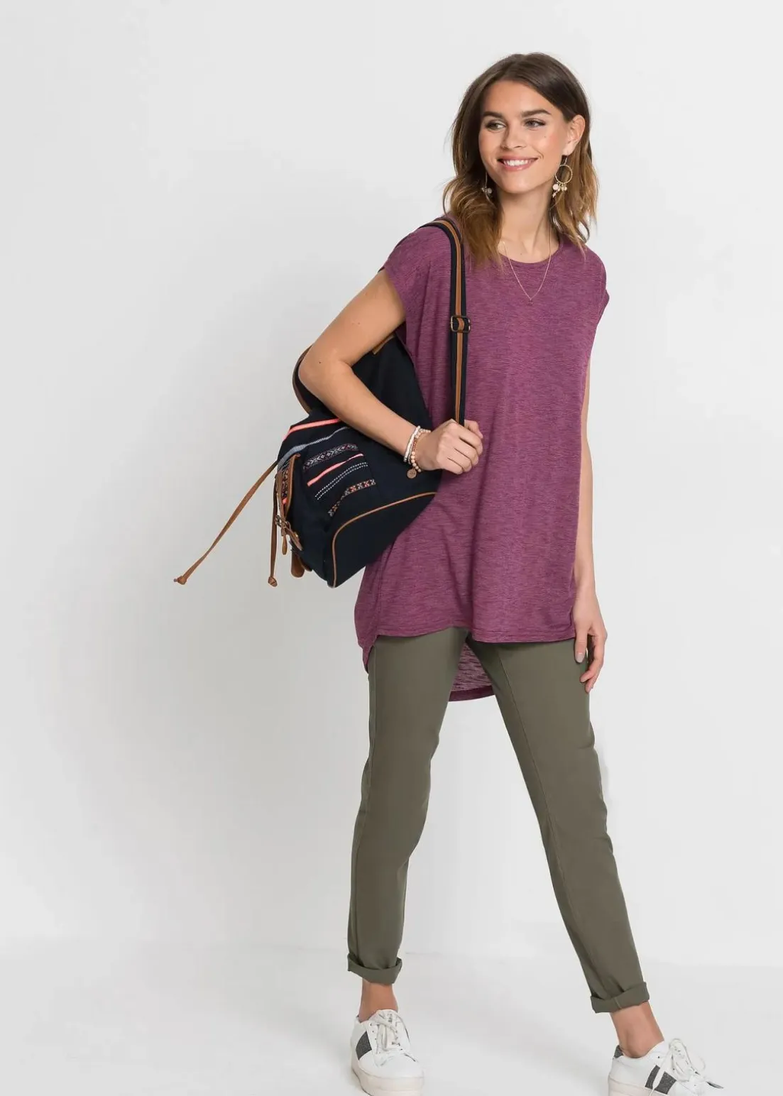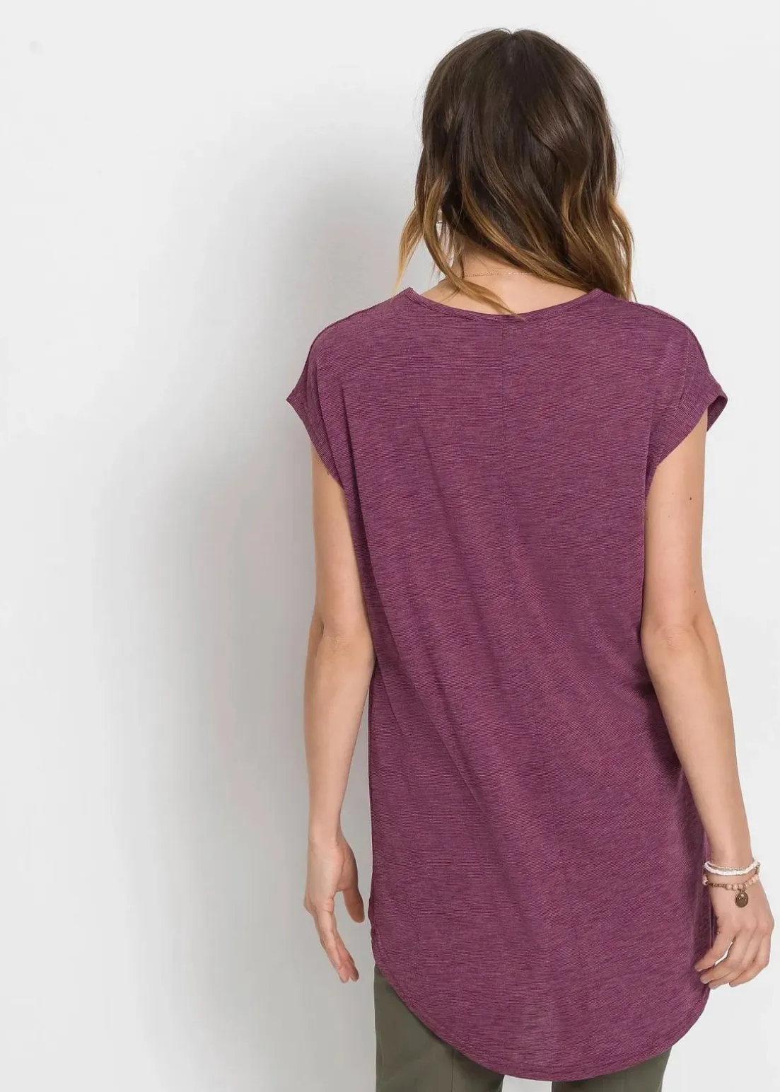 Kurzärmliges Longshirt mit längerem Rückenteil und abgerundetem Saum