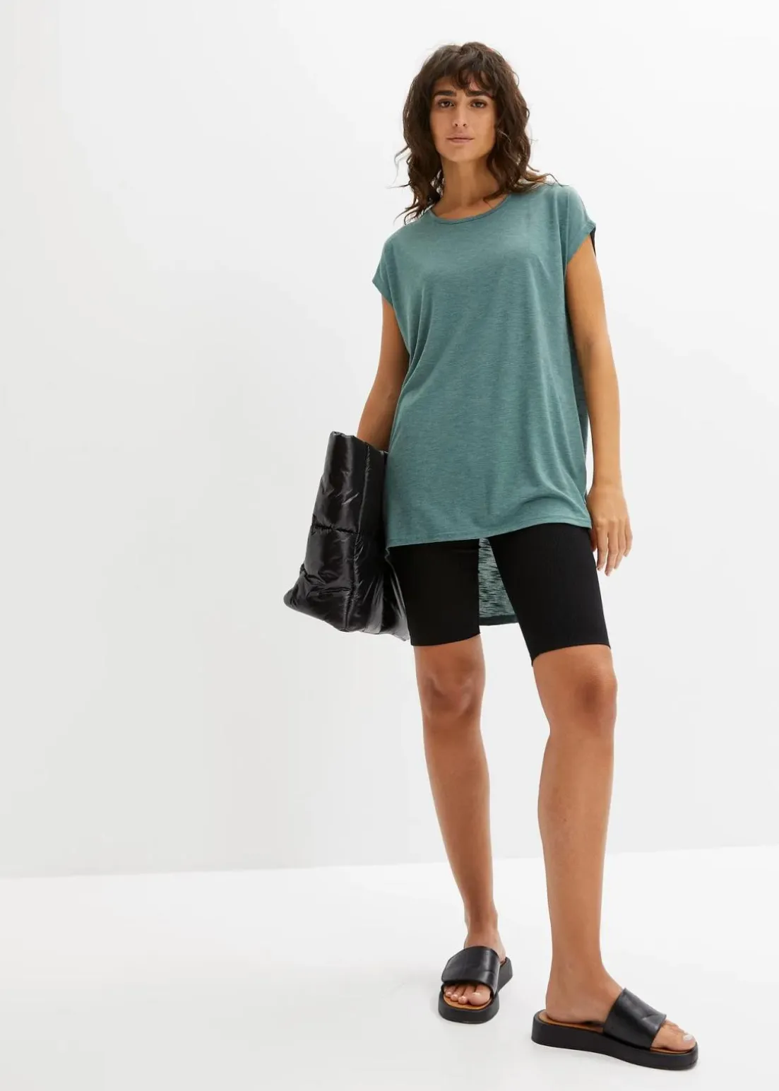Kurzärmliges Longshirt mit längerem Rückenteil und abgerundetem Saum
