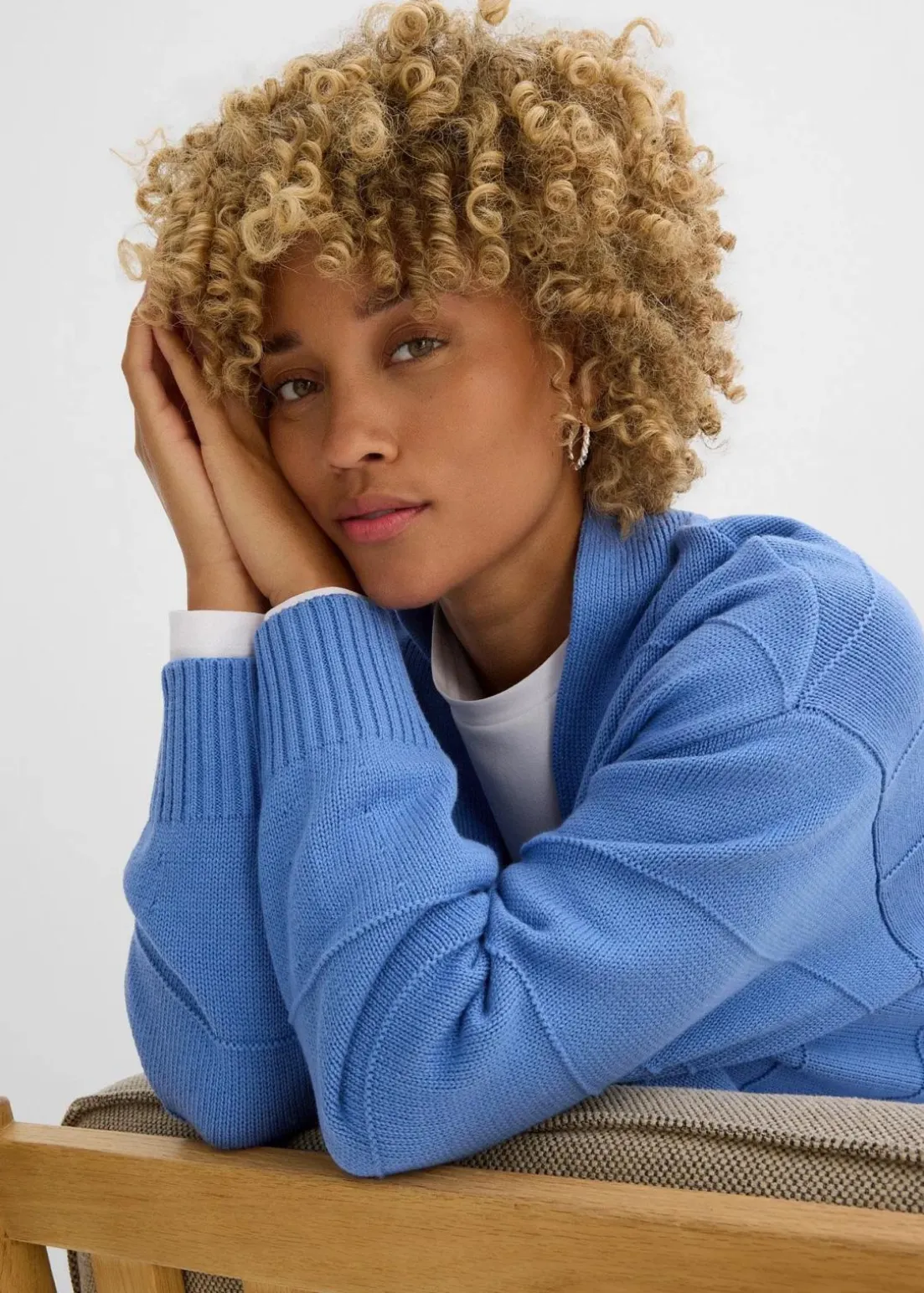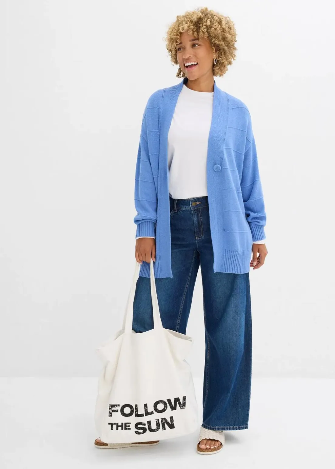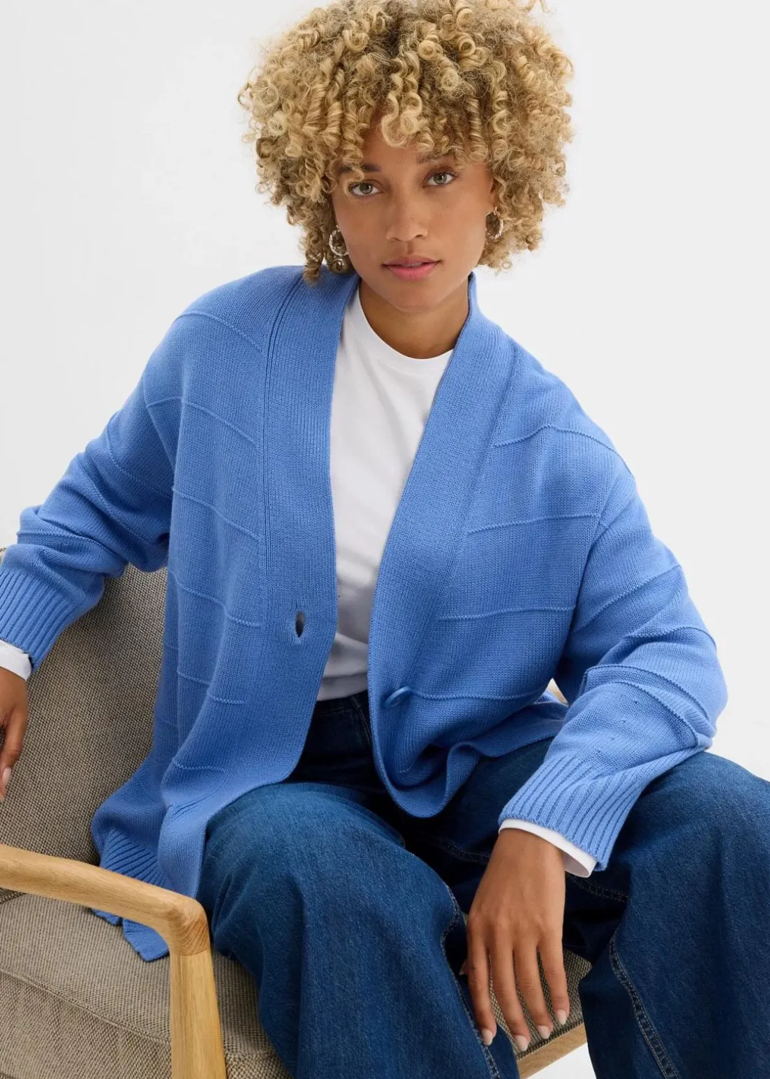 Weit geschnittene Strickjacke mit überschnittener Schulter und leichtem Strukturmuster.