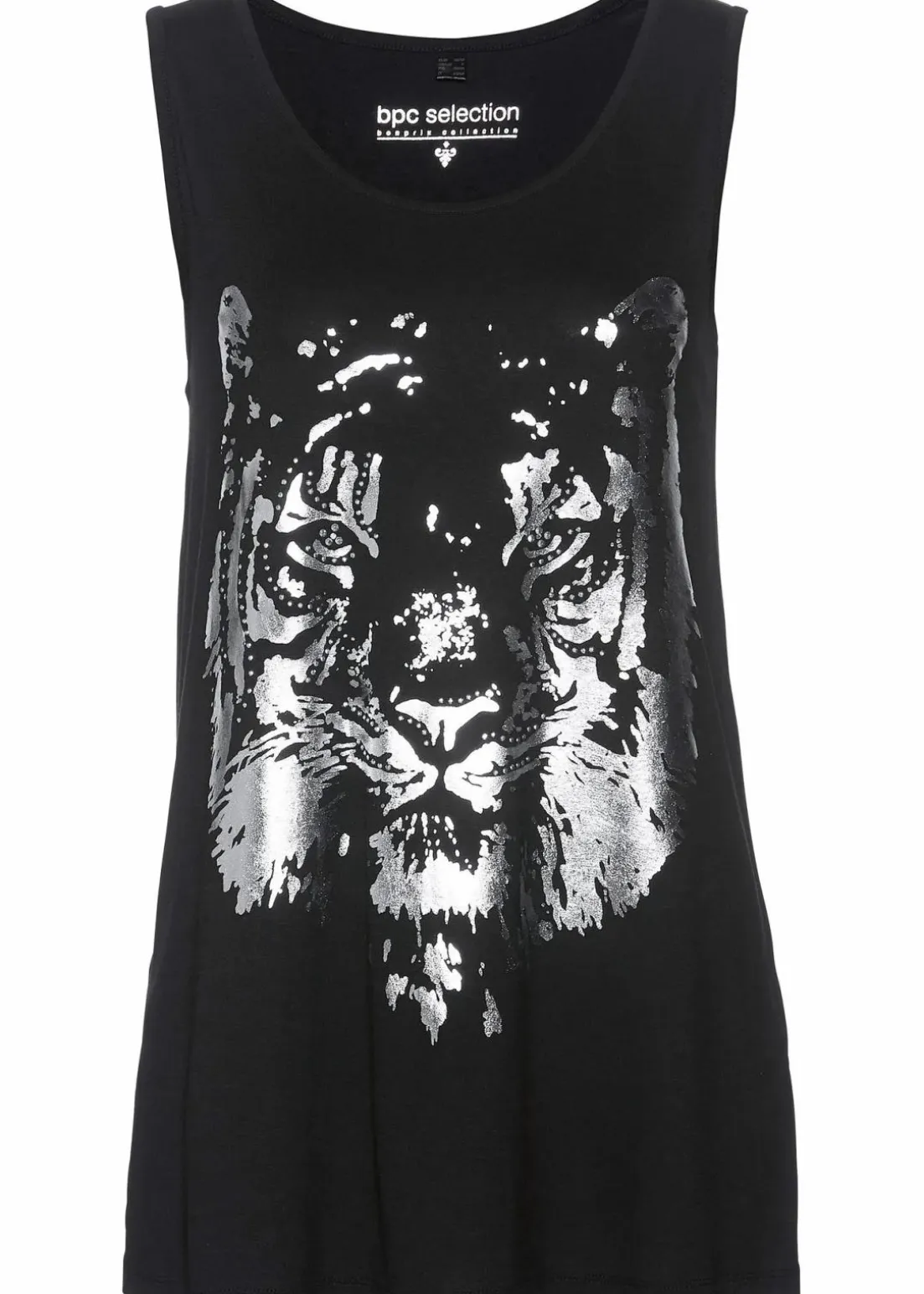 Mit Tigerprint vorn, in figurumspielender Passform, Länge ca. 68 cm Gr. 36/38 bis ca. 78 cm Gr. 56/58, maschinenwaschbar.